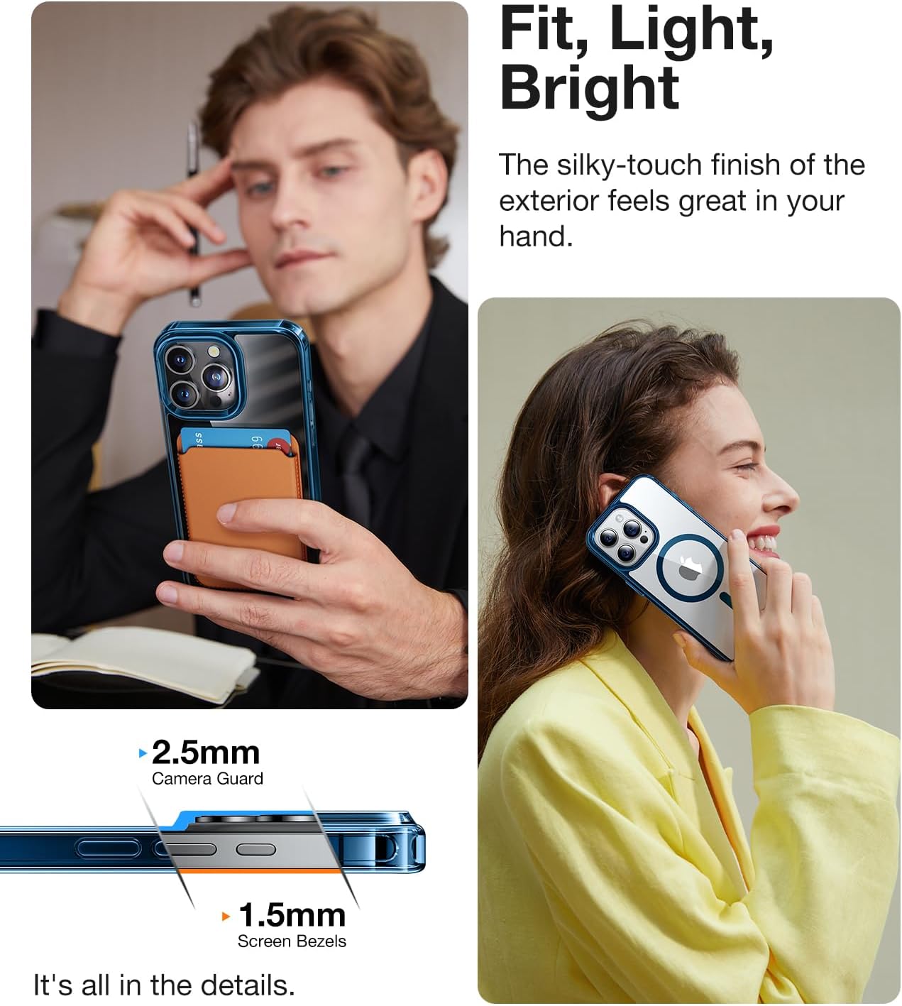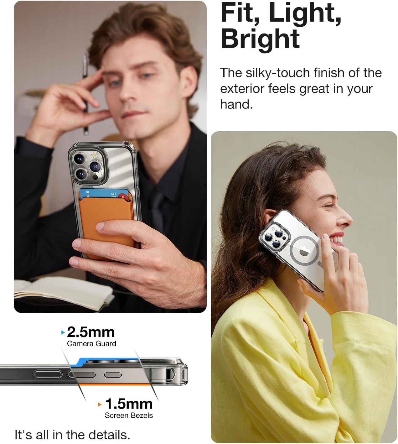 • 👍【Slim, Sleek, Secure Grip】 Slim profile, as thin as 0.04 inches, offers an incredibly light and comfortable grip for your iPhone 15 Pro Max. Made with premium soft-to-touch thermoplastic polyurethane (TPU) and silky-touch finish, this magnetic clear iPhone 15 Pro Max case ensures a delightful tactile experience, along with non-slip textured sides to provide the ultimate grip you can rely on. Plus, the sleek design makes it easy to carry in your pocket.
