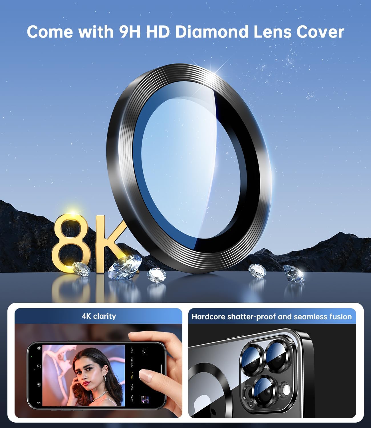 • 🛡️[𝑪𝒐𝒎𝒆 𝒘𝒊𝒕𝒉 𝟗𝑯 𝑯𝑫 𝑫𝒊𝒎𝒐𝒏𝒅 𝑪𝒂𝒎𝒆𝒓𝒂 𝑪𝒐𝒗𝒆𝒓] The lens protectors are made of advanced 9H Glass and a diamond-grade high-density compression layer process. Provide full Camera lens protection and will not affect the quality of the photo. Nearly 4mm (2x higher than others)camera raised bezels and 2mm screen raised bezels to prevent screen and camera from scratches & frictions. Extremely extend the service life of your phone cameras.