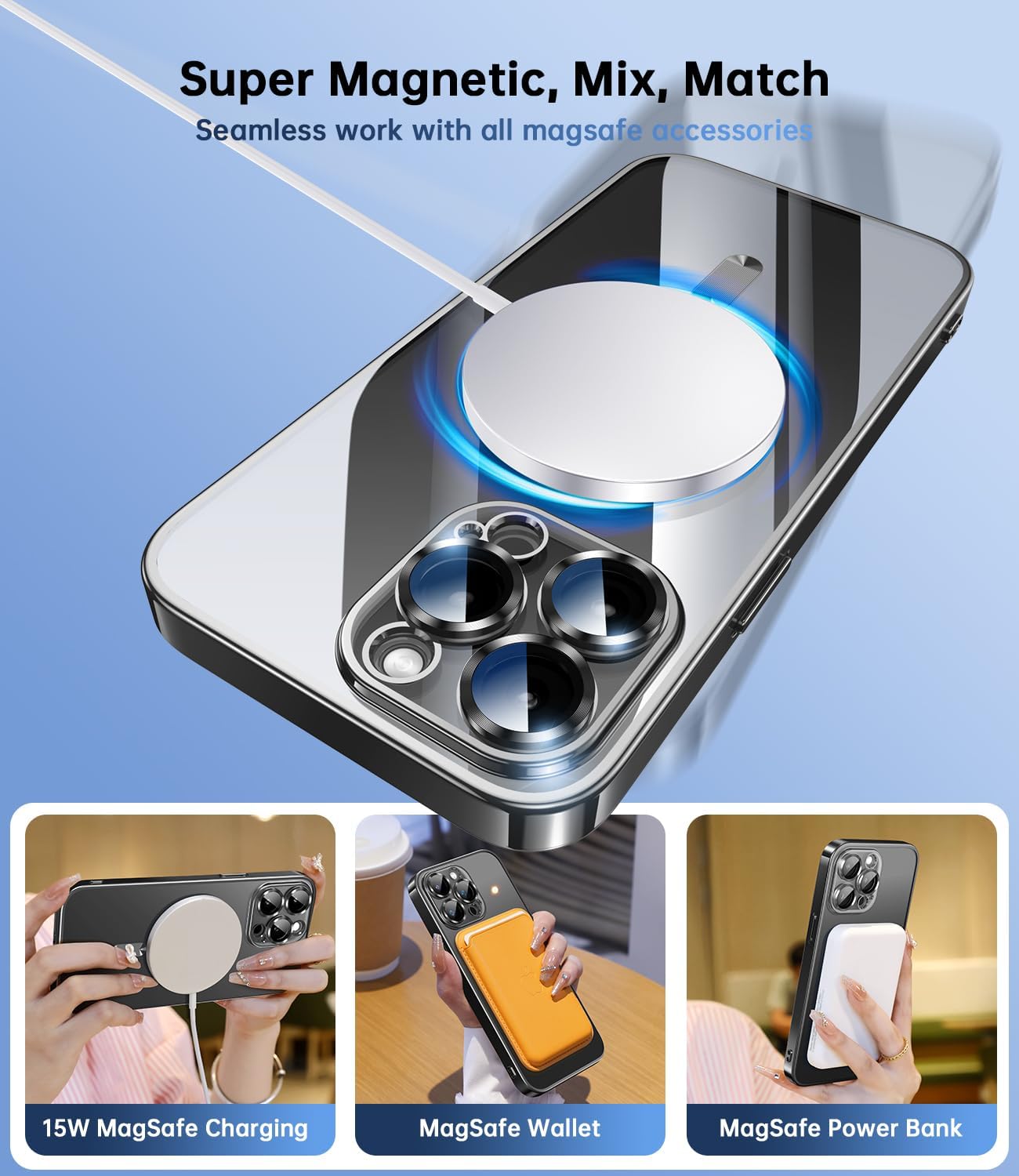 • 🧲[𝑪𝒐𝒎𝒑𝒂𝒕𝒊𝒃𝒍𝒆 𝒘𝒊𝒕𝒉 𝑴𝒂𝒈𝑺𝒂𝒇𝒆 𝑨𝒄𝒄𝒆𝒔𝒔𝒐𝒓𝒊𝒆𝒔 𝑺𝒆𝒂𝒎𝒍𝒆𝒔𝒔𝒍𝒚]This iPhone 15 Pro Max Case is compatible with all MagSafe accessories and Qi-certified wireless chargers. It provides a built-in 48pcs magnets ring structure, arranged with Waldeng's MagResonance array technology, allowing for 2 TIMES STRONGER magnetism than the Official's. Its sleek design complements your style. Say goodbye to fumbling and hello to effortless multitasking with this magnetic marvel!