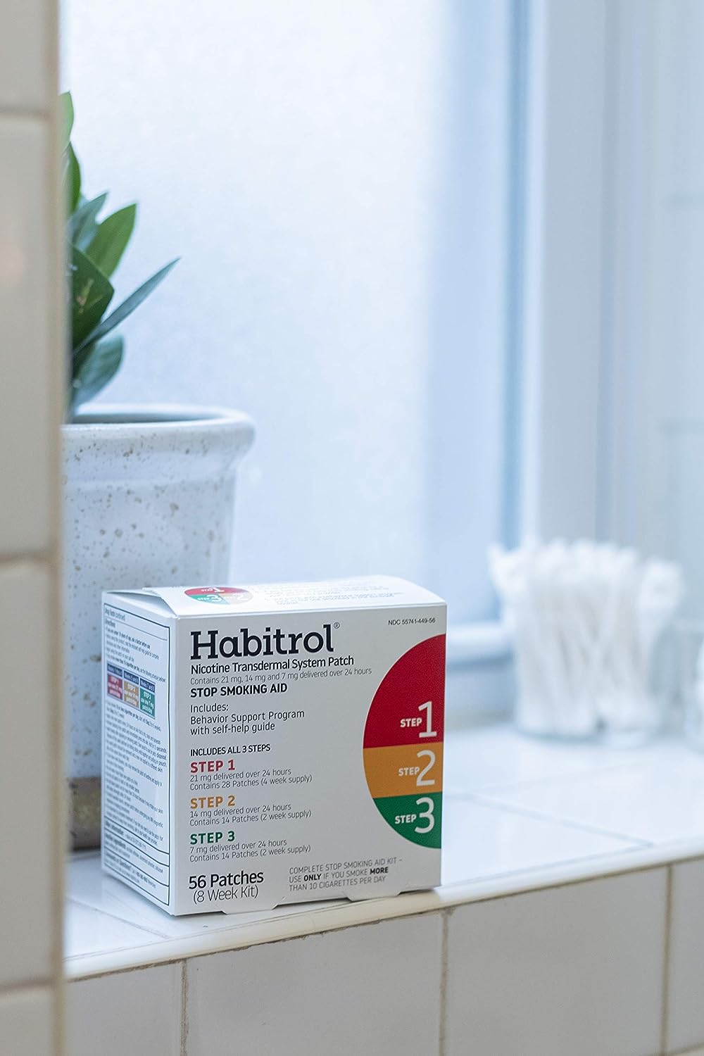 Habitrol Nicotine Transdermal System Patch | Stop Smoking Aid | Steps 1, 2, and 3 (21, 14, and 7 mg) | 56 Patches (8 Week Kit)
