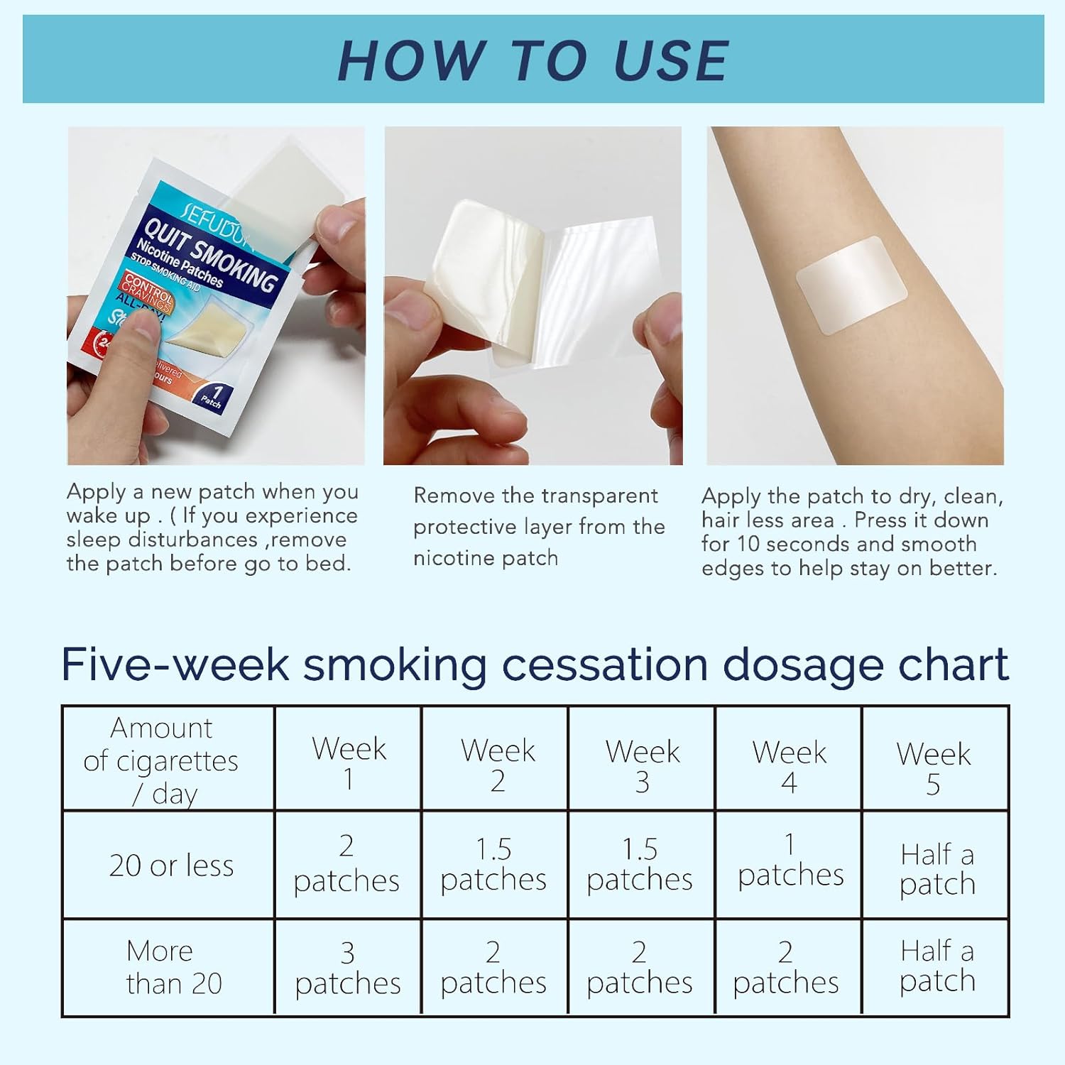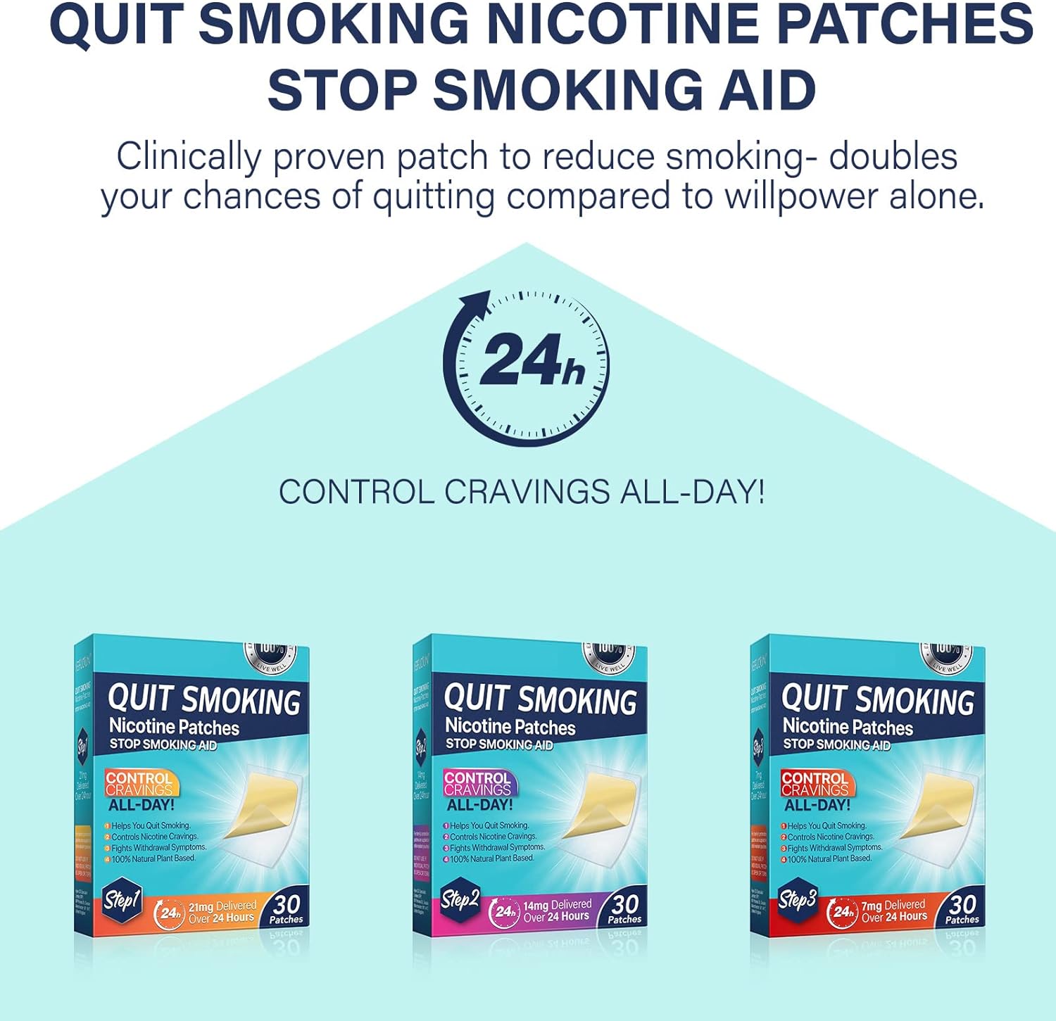 • Quit Smoking all day: Our patches help prevent the urge to smoke. Gently applies a patch every 24 hours on skin, all day aid to help quit smoking, control your desire to smoke, and combat withdrawal symptoms.