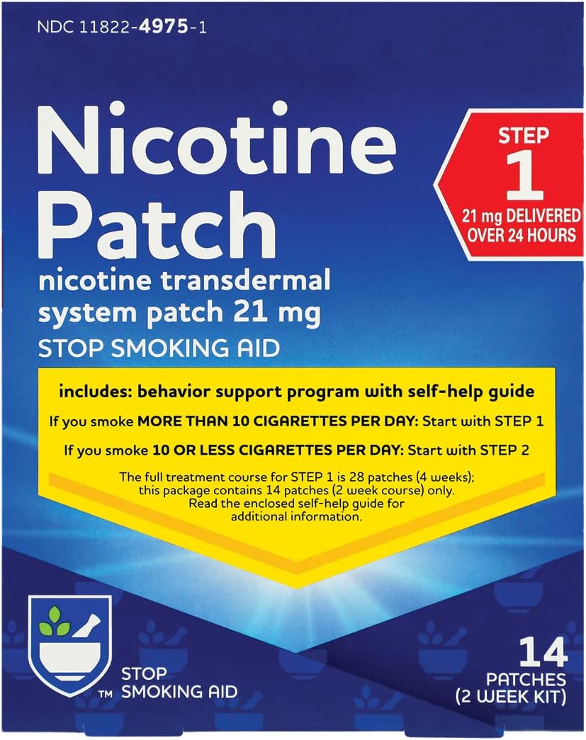 Rite Aid Nicotine Patches - Step 1 | 21 mg - 14 Count | Quit Smoking Patches | Smoking Aid to Help Quit Smoking | Nicotine Transdermal System Patch