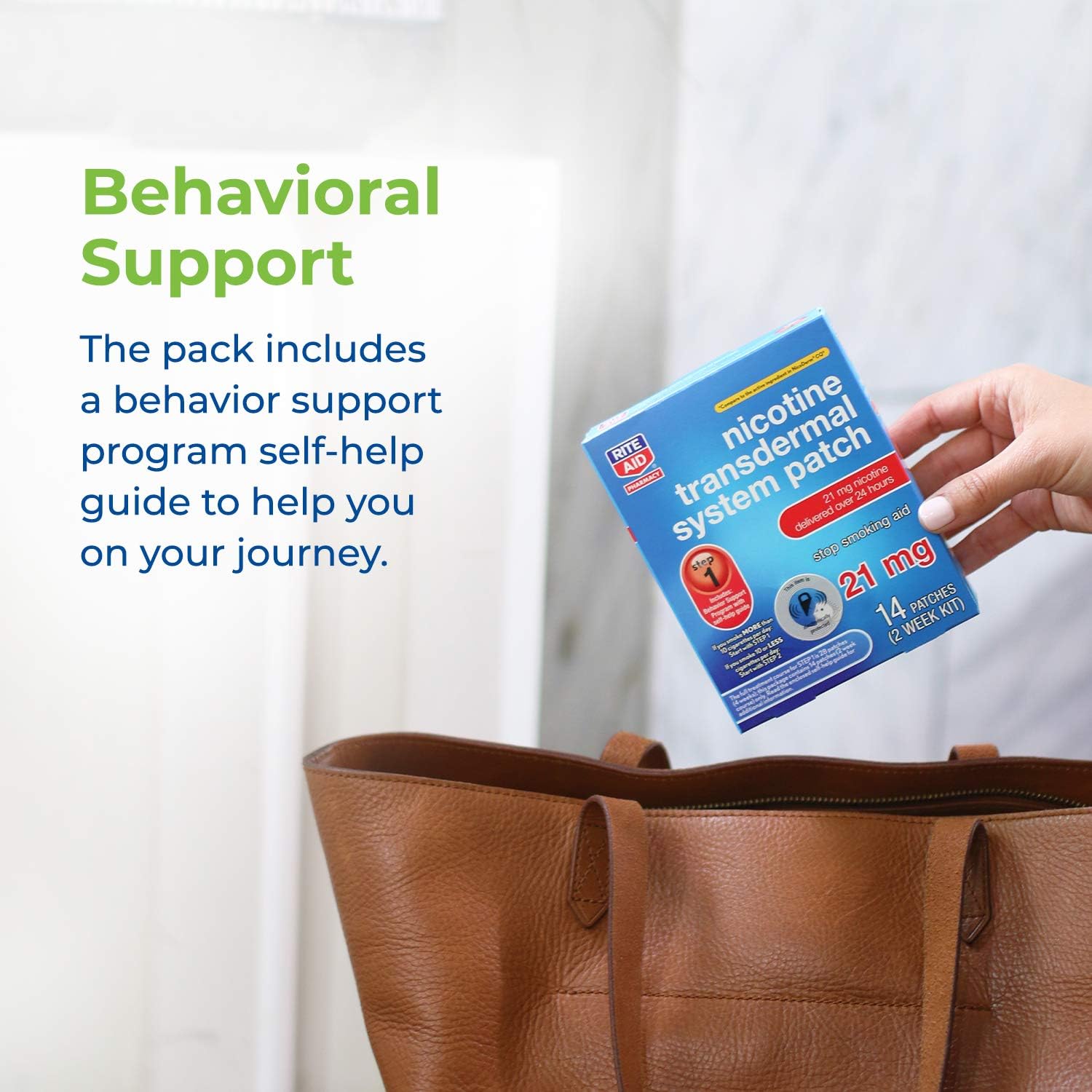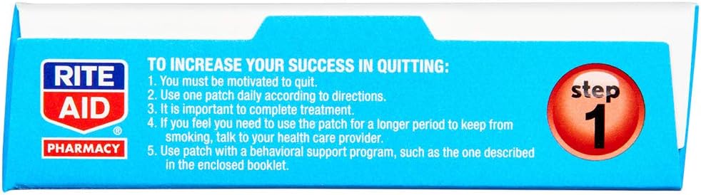 • ALL DAY AID TO QUIT SMOKING: Rite Aid Nicotine Transdermal System Patches are designed to give you 24 hours of support. Each nicotine patch releases 21 mg of nicotine over a 24-hour period to help you kick your habit and cravings. Apply one new patch every 24 hours on skin that is dry, clean, and hairless. Remove the backing from the patch and immediately press it onto the skin. Hold for ten seconds. Wash your hands after applying or removing a patch.