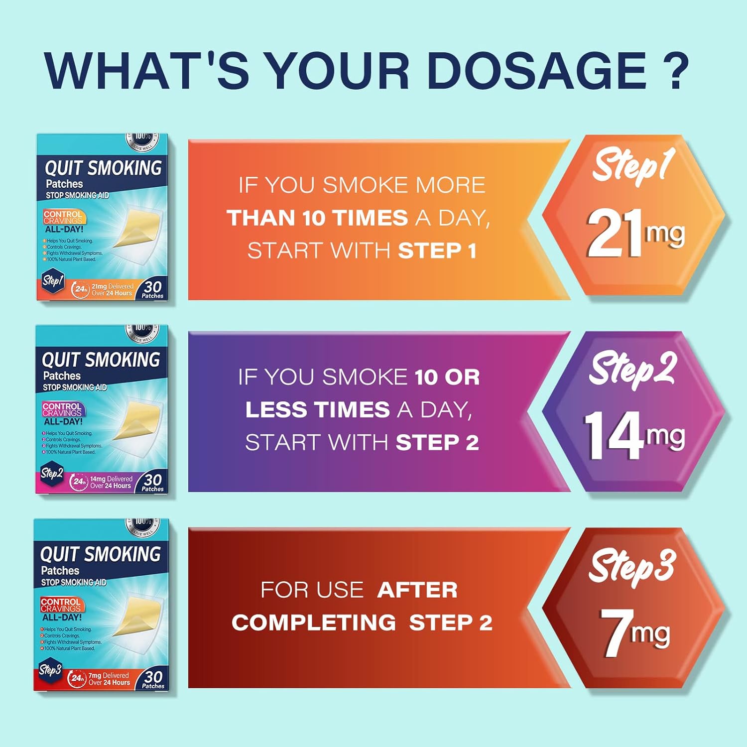 • 30 Count Patches, Reducing It --- If you are having it more than 10 days, Start from Step 1 stop aid is recommended, it comes 30 count, after completely usage, it makes you close to your successful quit program
