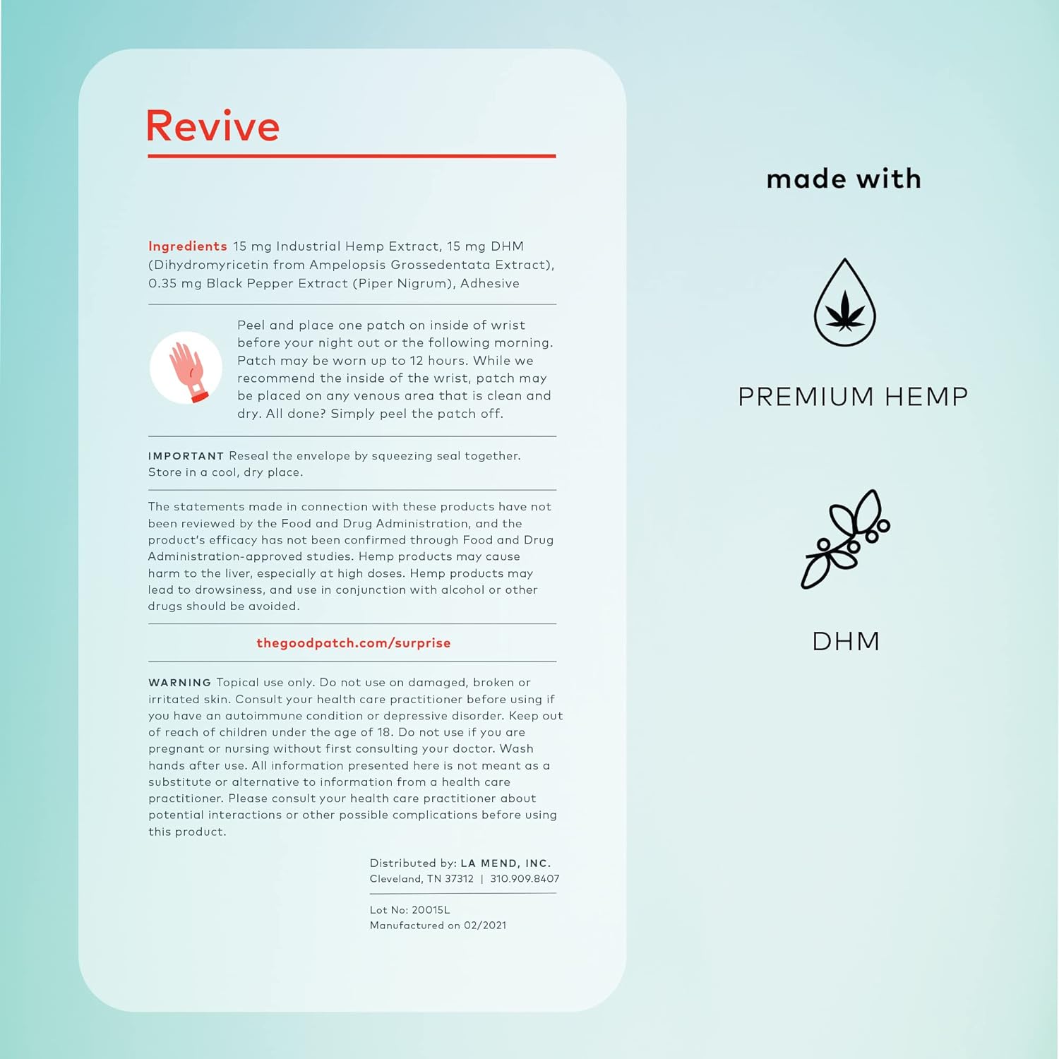 The Good Patch Revive Patch - Bounce Back After A Night Out - Plant Powered Wellness Patch - 15 mg of Hemp Extract and DHM (8 Total Patches)