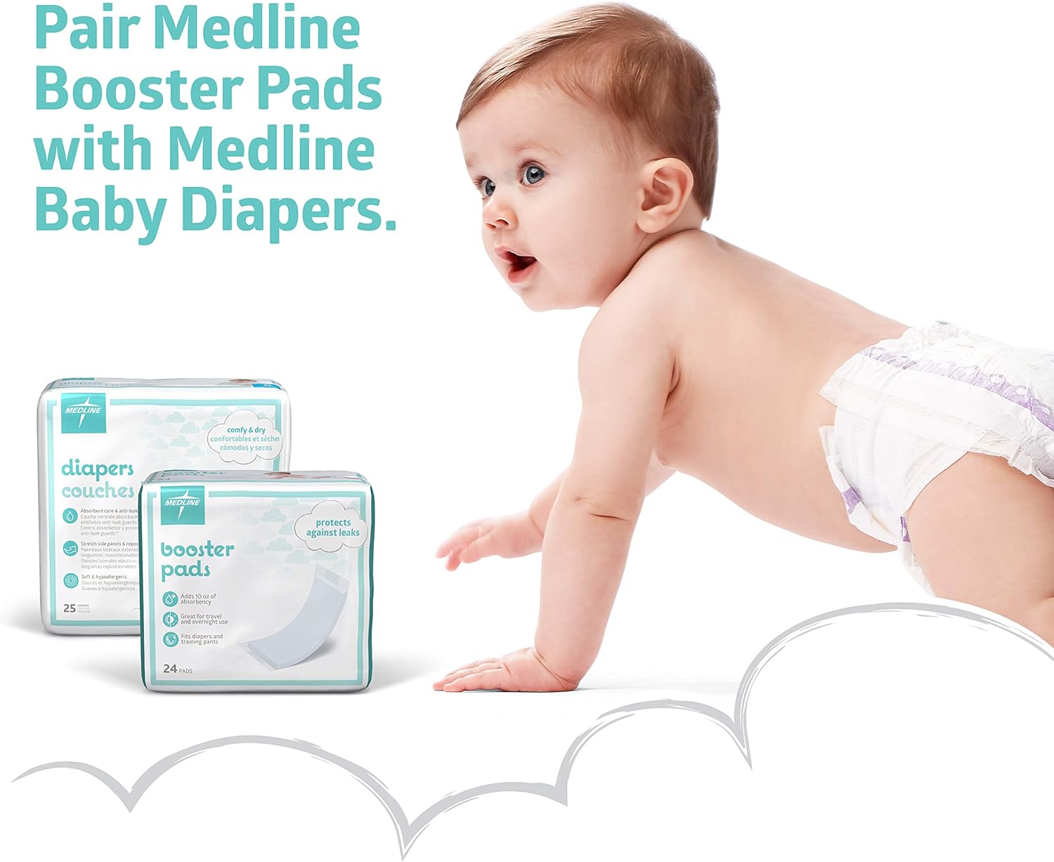 Medline Booster Pads with Adhesive, 192 Count, Baby Diaper Doubler for Overnight Use to Help Eliminate Leaks