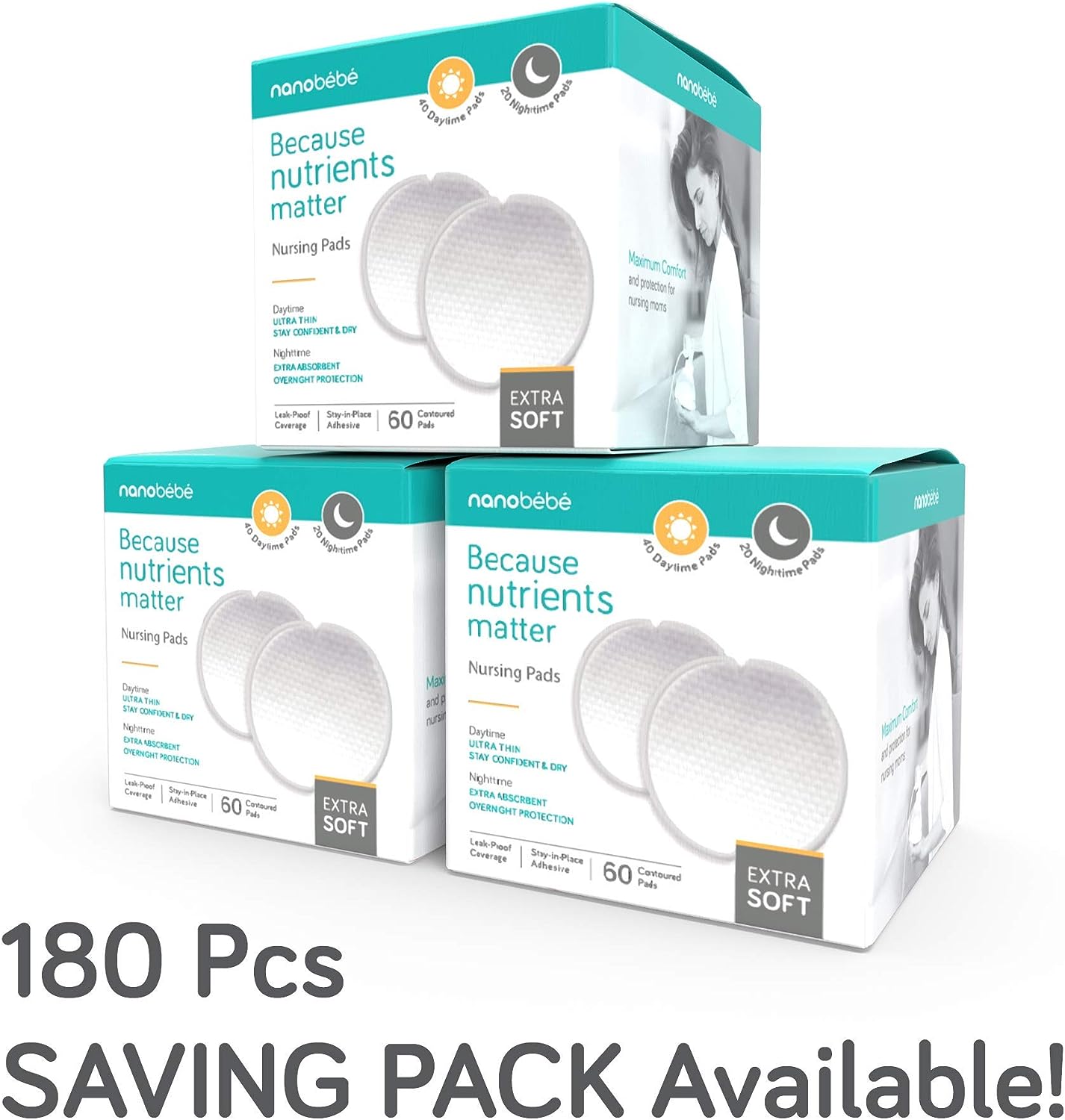 Nanobébé Disposable Nursing Pads – 40 Days and 20 Nights Ultra Thin & Extra Absorbent Vented Leak Proof Nursing Essentials, Individually Wrapped (60 Count)
