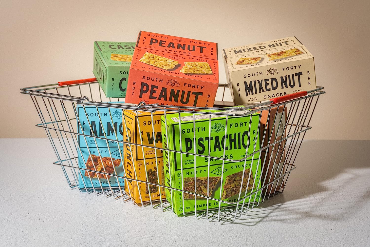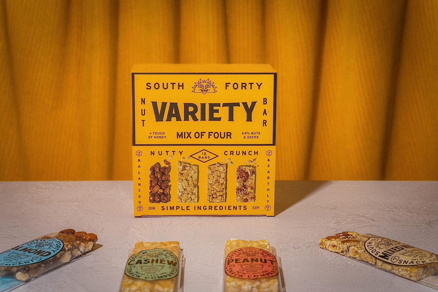 South 40 Snacks Mix of 6 Nut Bars, Extra Crunchy and Simple Nut Snack Bar, Nuts and Honey, Healthy Sweet Nut Clusters, Individually Wrapped Mediterranean Snacks, Natural Protein(40g Bar, Pack of 12)