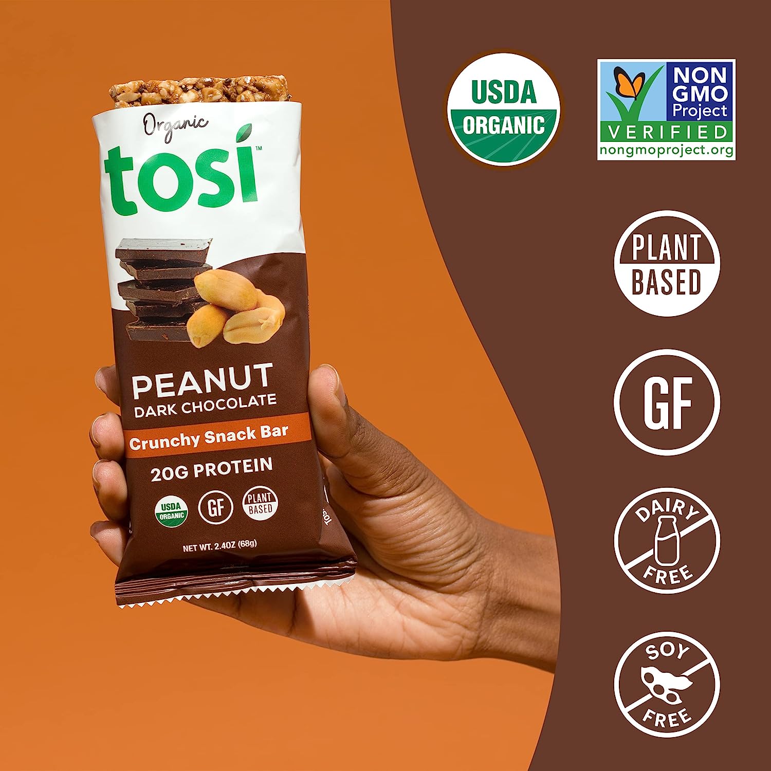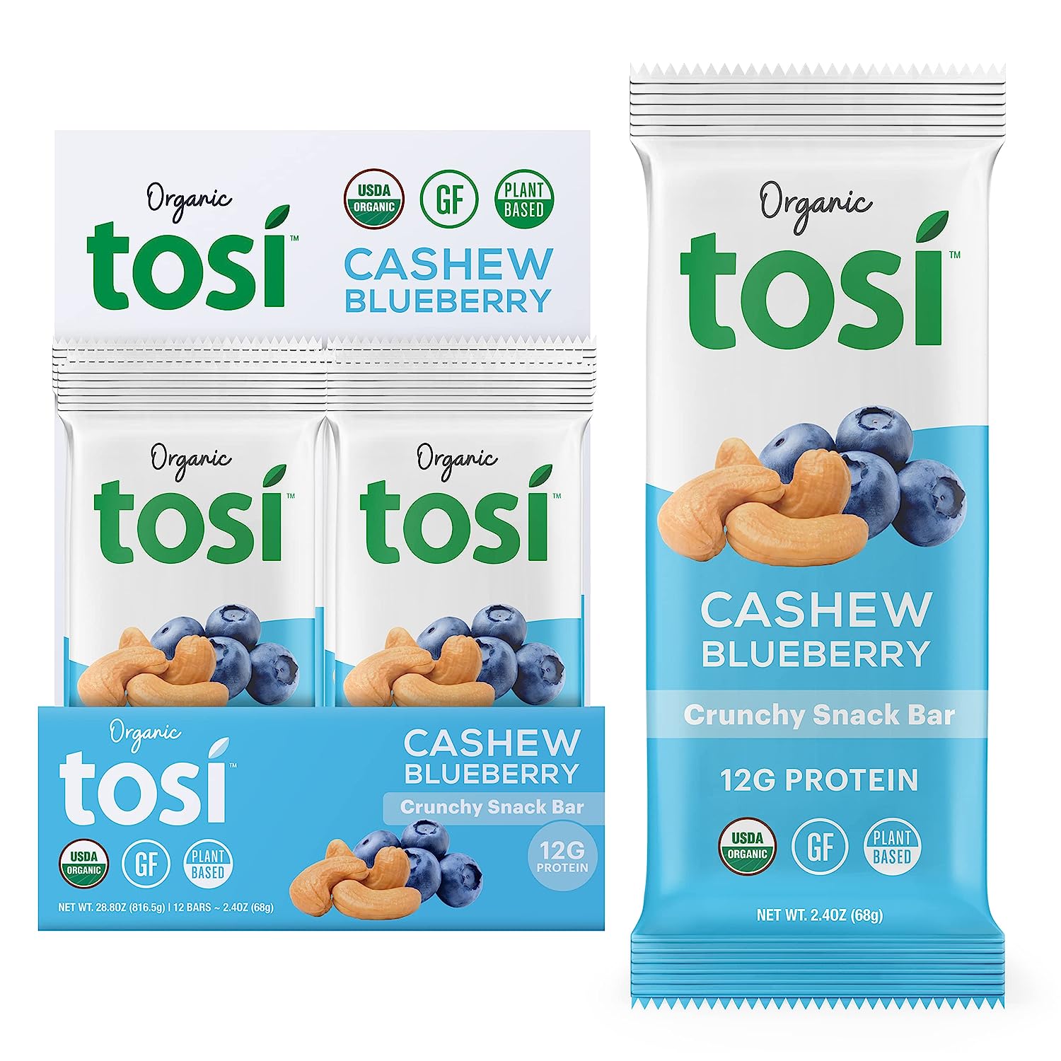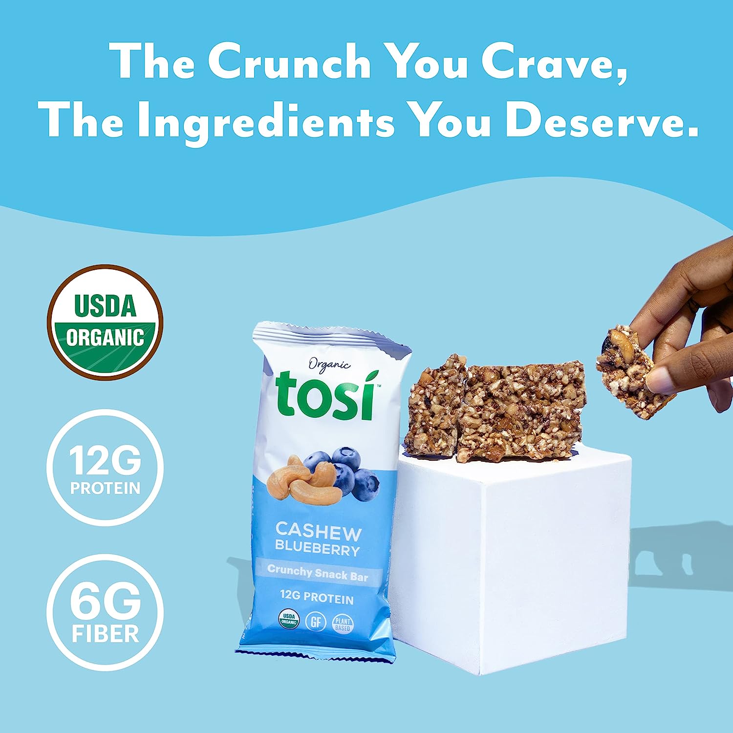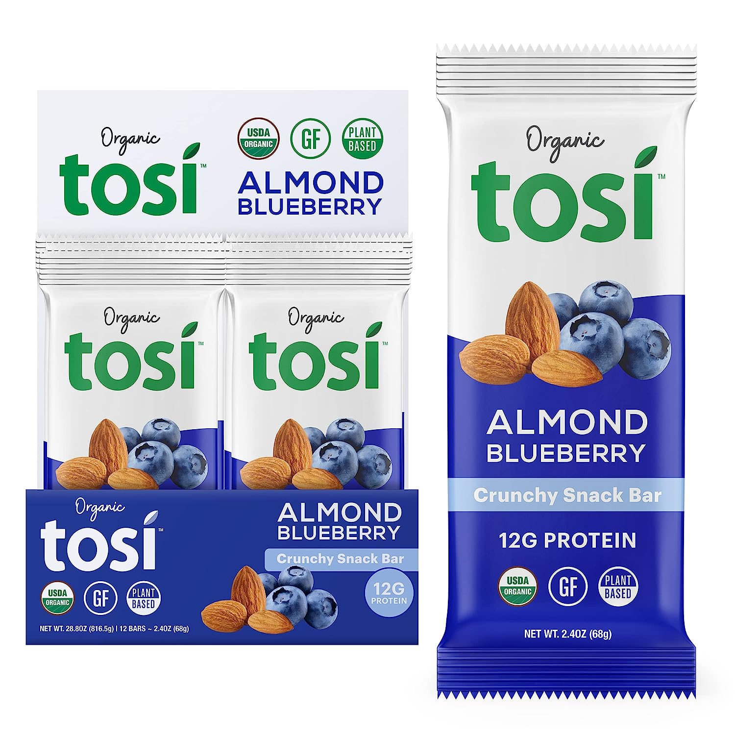 Tosi Plant Based Protein Bars, 12G Protein (Pack of 12, 2.4oz Bars), Vegan Bars, Crunchy Snacks, Almond Bars with Flax & Chia Seeds, Gluten Free, Omega 3s
