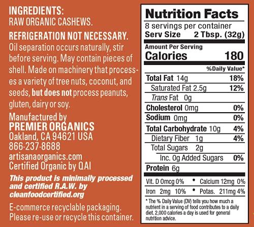 • FITS INTO MANY LIFESTYLES: Our Cashew Butter is always organic, vegan, non-GMO, kosher, gluten free, dairy free, peanut free, and certified R.A.W., making it perfect for vegan, plant-based, and paleo diets.