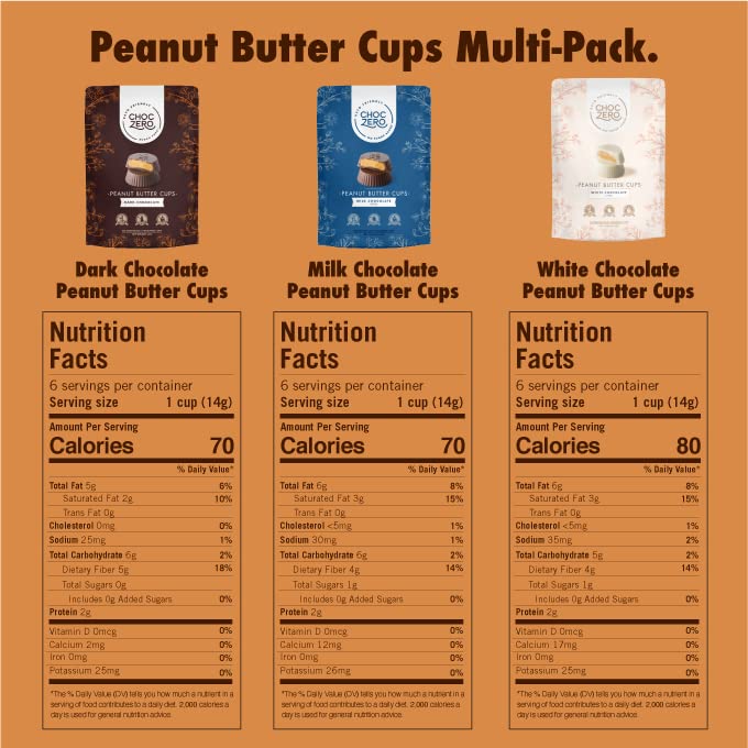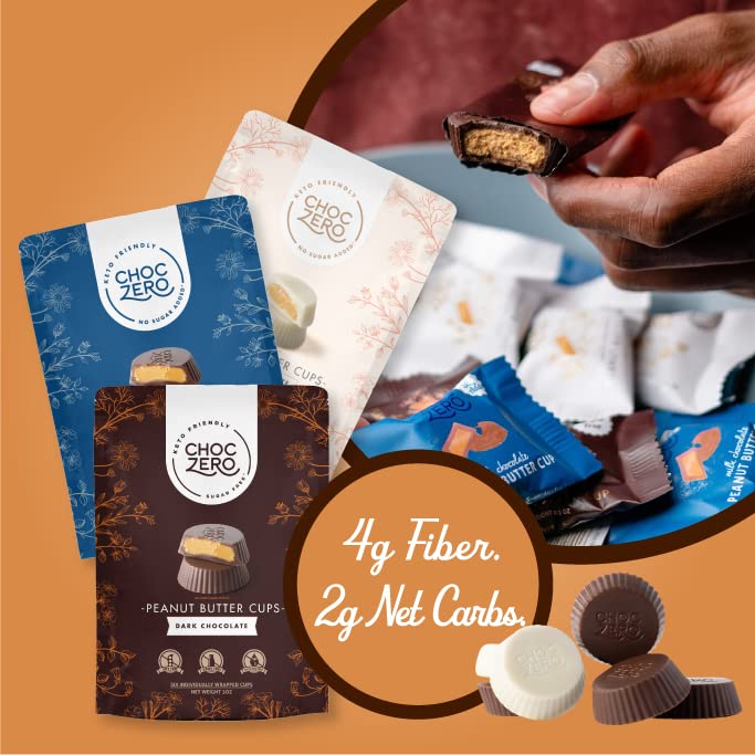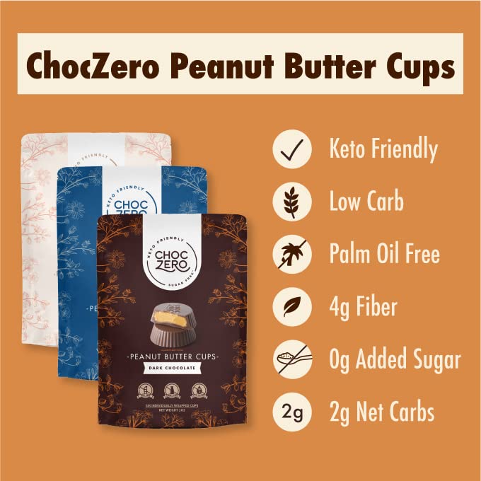 ChocZero's Dark Chocolate Peanut Butter Cups - Sugar Free, KETO FRIENDLY, 2Bags