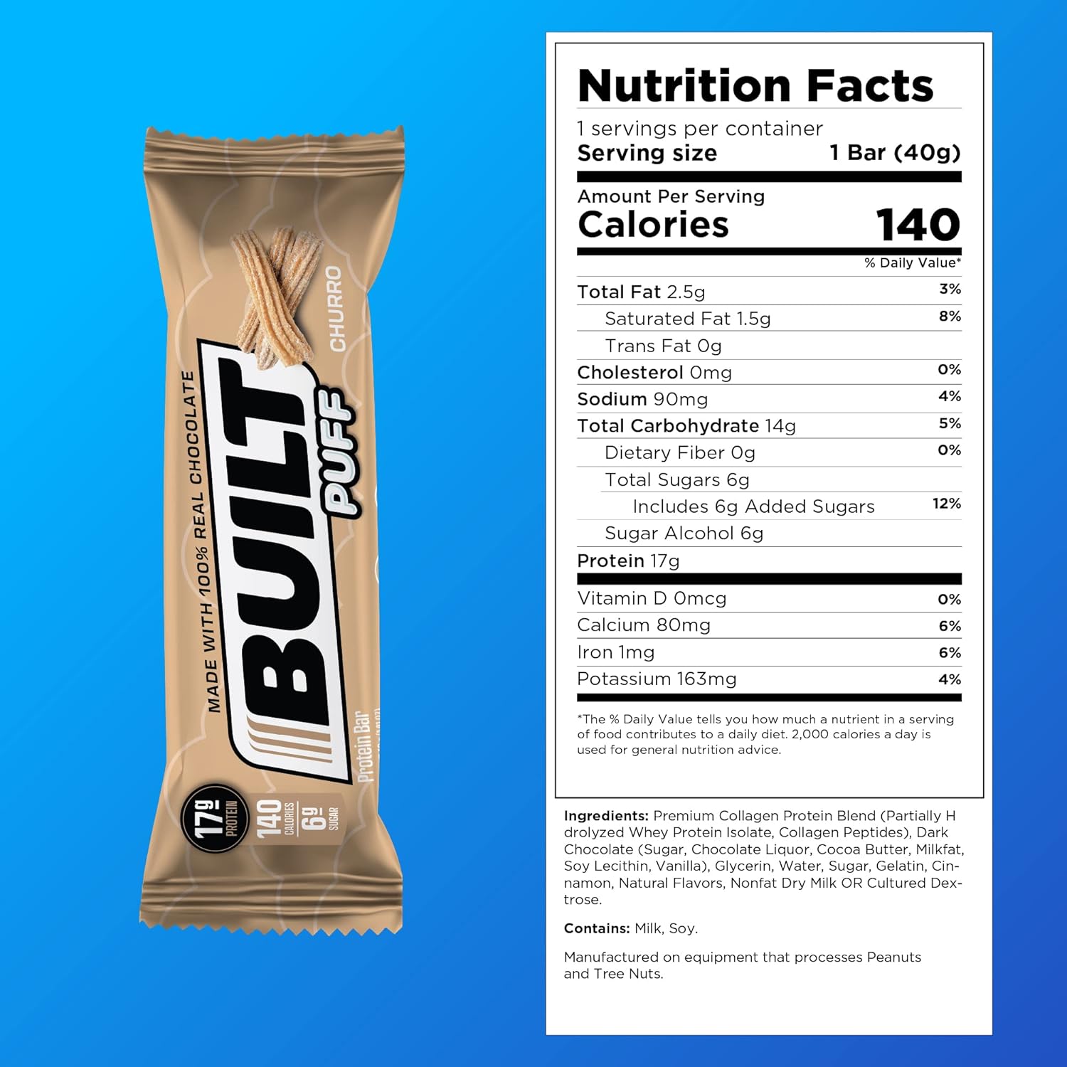 Built Bar Variety 12 Pack High Protein Energy Bars | Gluten Free | Chocolate Covered | Low Carb | Low Calorie | Low Sugar | Delicious Protien | Healthy Snack (Brownie Batter, Churro, Coconut)
