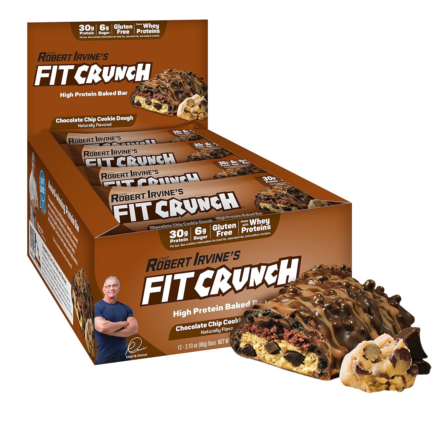 FITCRUNCH Full Size Protein Bars, Designed by Robert Irvine, 6-Layer Baked Bar, 6g of Sugar, Gluten Free & Soft Cake Core (Peanut Butter)