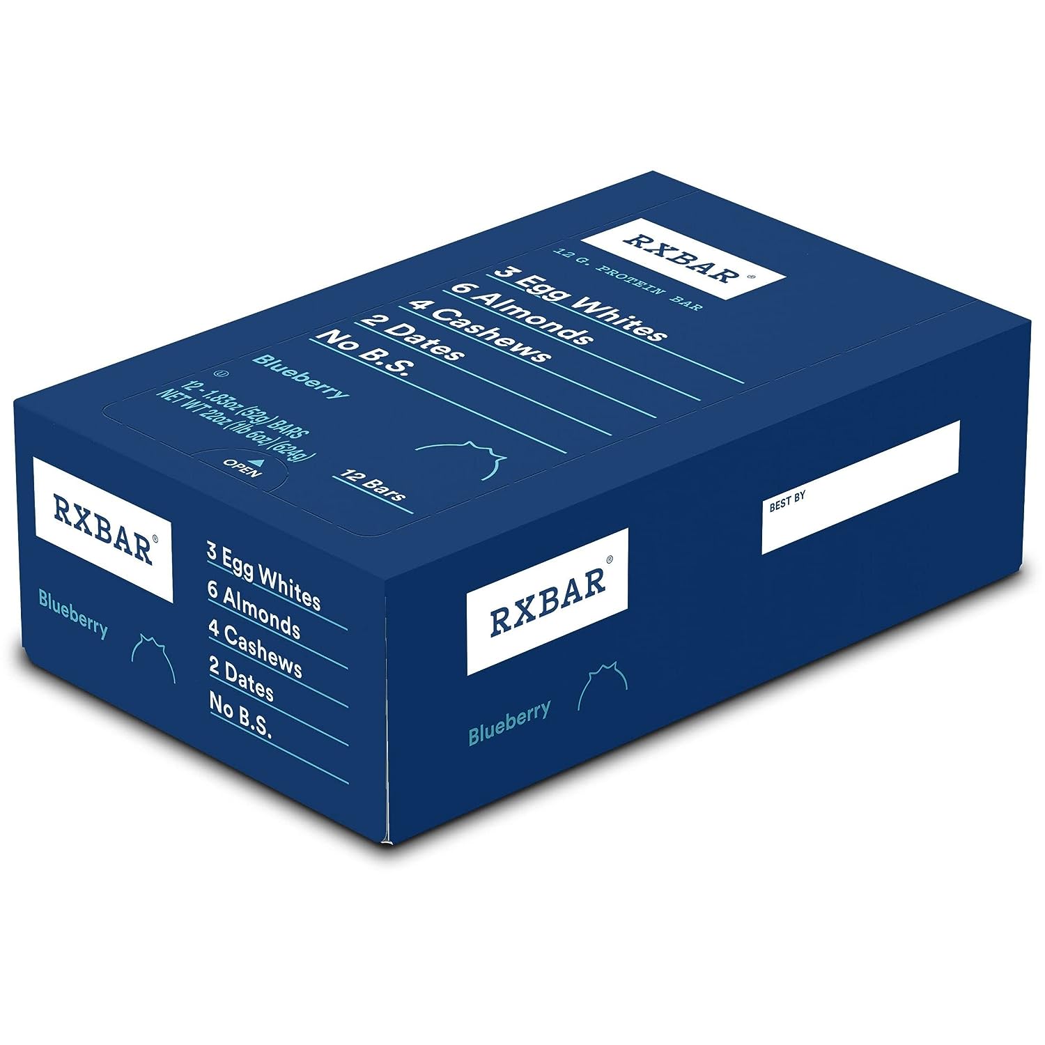 Simple, delicious ingredients make RXBAR protein bars a satisfying way to fuel your day. These wholesome blueberry protein bars are filled with ingredients you can recognize. Each snack bar is made with egg whites for protein, crunchy almonds and cashews, with dates to bind it all together, and no B.S. Enjoy the taste of real ingredients that will crush any sweet cravings you have during the day; Just the right amount to fill you up, each serving contains 12g of protein (21% daily value), is gluten free, and ready to help you take on the day. Enjoy wholesome goodness worth snacking on. On your way to the gym, in the office or paired with your morning cup of joe, improve your daily routine with RXBAR Blueberry protein bars.