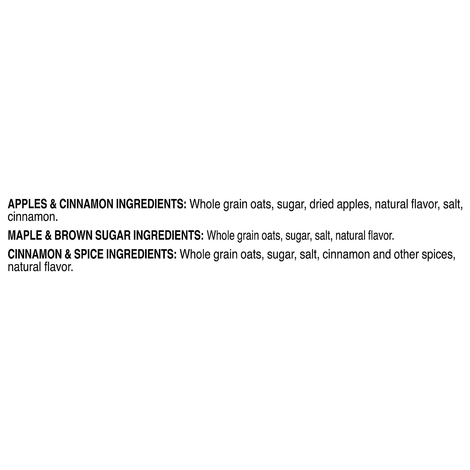 Crave a little variety now and then? So do we. That's why we offer Instant Oatmeal Flavor Variety Pack featuring Maple & Brown Sugar (flavor with other natural flavors), Apples & Cinnamon (flavor with other natural flavors) and Cinnamon & Spice flavors. With no artificial preservatives, or artificial sweeteners and so much delicious variety, the only problem is deciding which one you'll have.