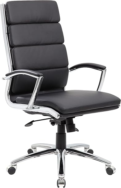 Boss Office Products CaressoftPlus Executive Chair, Traditional, Metal Chrome Finish 30D x 27W x 42H in