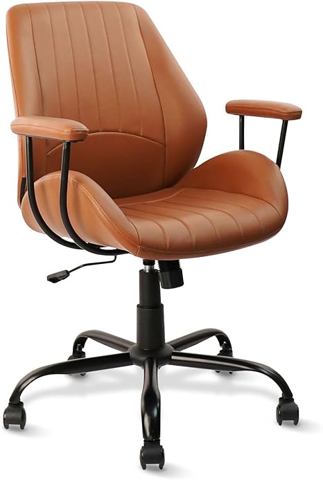 CLATINA Home Office Brown Chair PU Leather Desk Chair with Wheels, Mid Century Modern Office Chair with Armrests and Lumbar Support, Capacity 400lbs