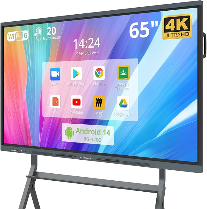 65‰Û_ Smart Board, 4K UHD Interactive Whiteboard with Android 14 System and 13MP Camera, All in One Digital Whiteboard for Home, Classroom and Business (Wall Mount Included)