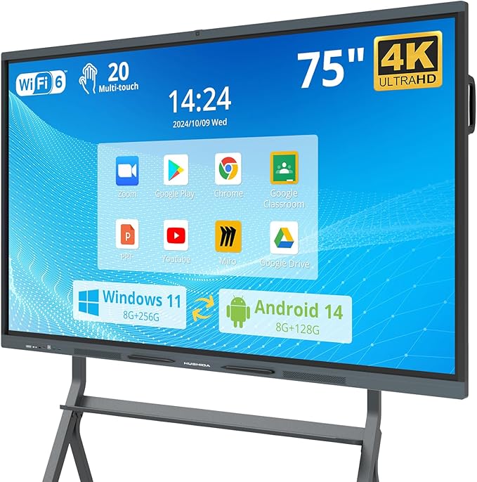 75‰Û_ Smart Board, 4K UHD Interactive Whiteboard Built in Dual System and 13MP Camera, All in One Digital Whiteboard for Home, Classroom and Business (Wall Mount Included)