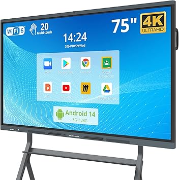 75‰Û_ Smart Board, 4K UHD Interactive Whiteboard with Android 14 System and 13MP Camera, All in One Digital Whiteboard for Home, Classroom and Business (Wall Mount Included)