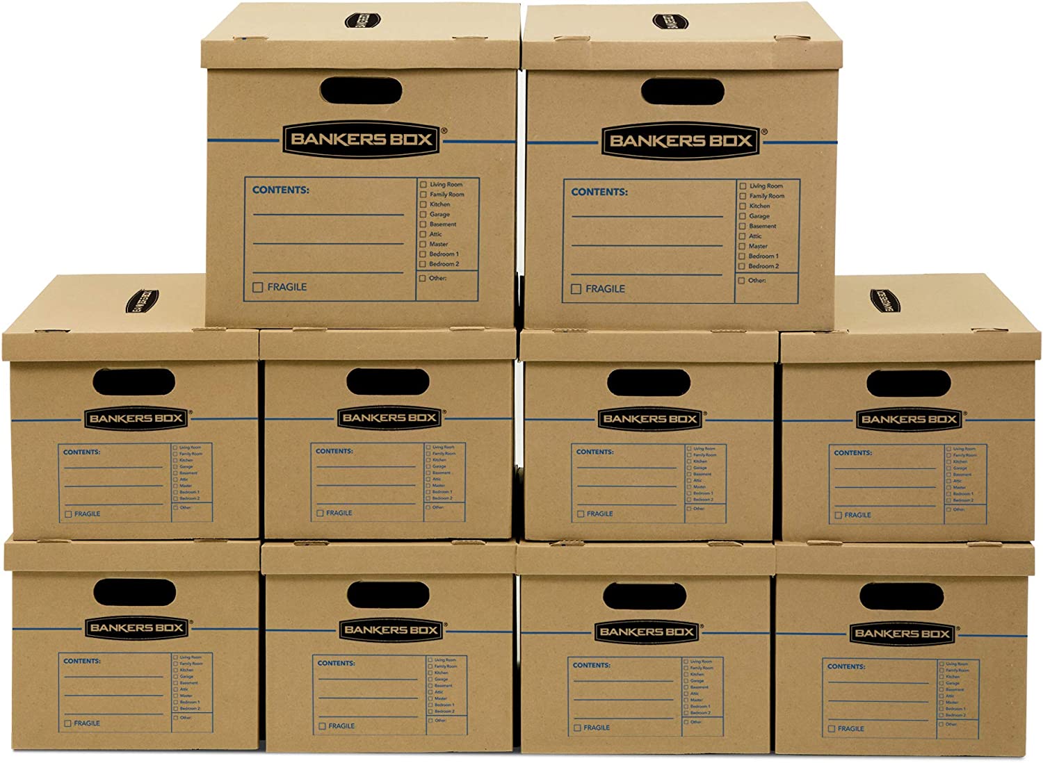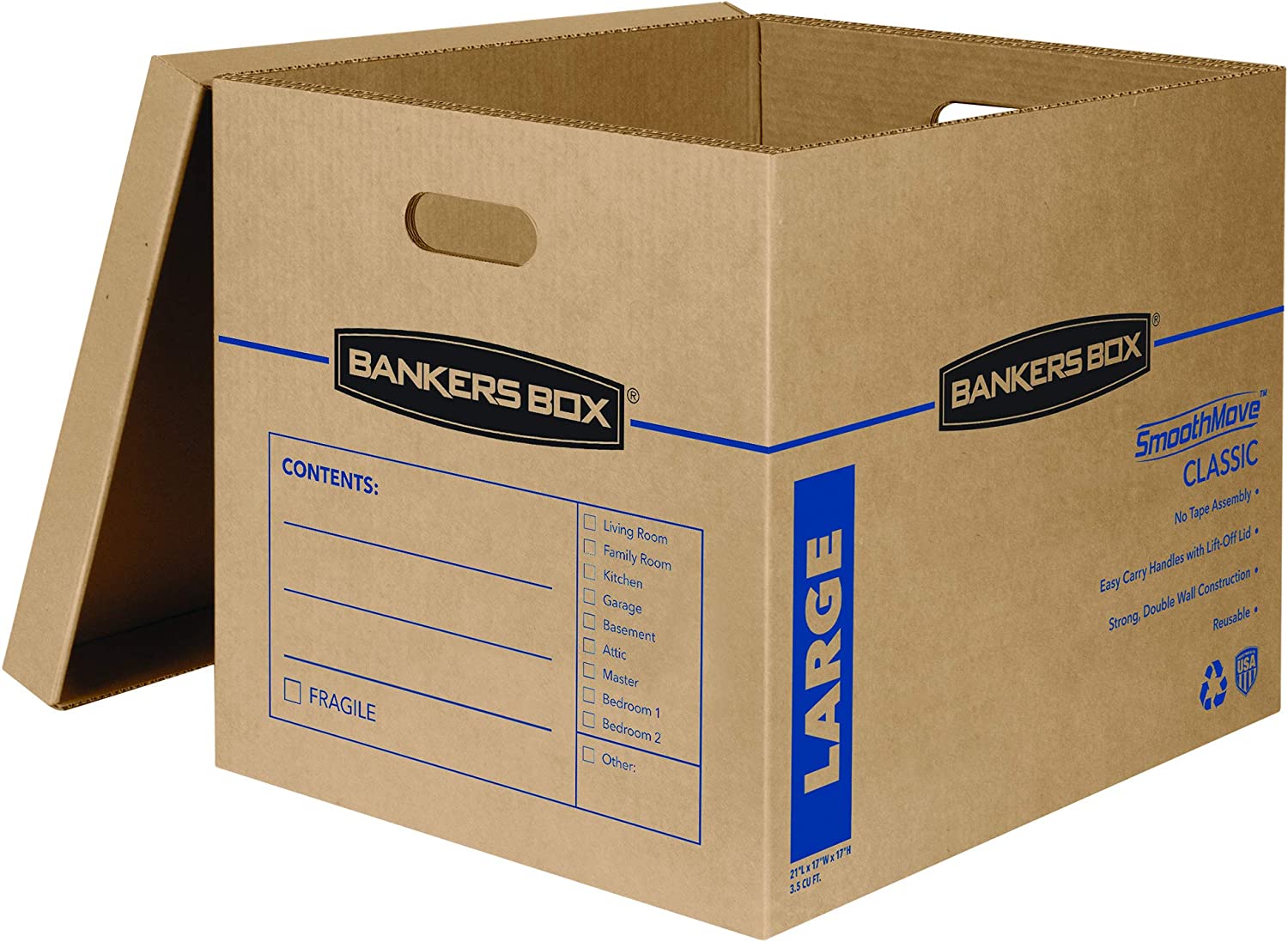 Bankers Box SmoothMove Classic Moving Boxes, Tape-Free Assembly, Easy Carry Handles
