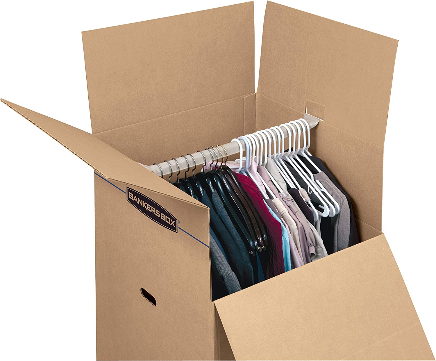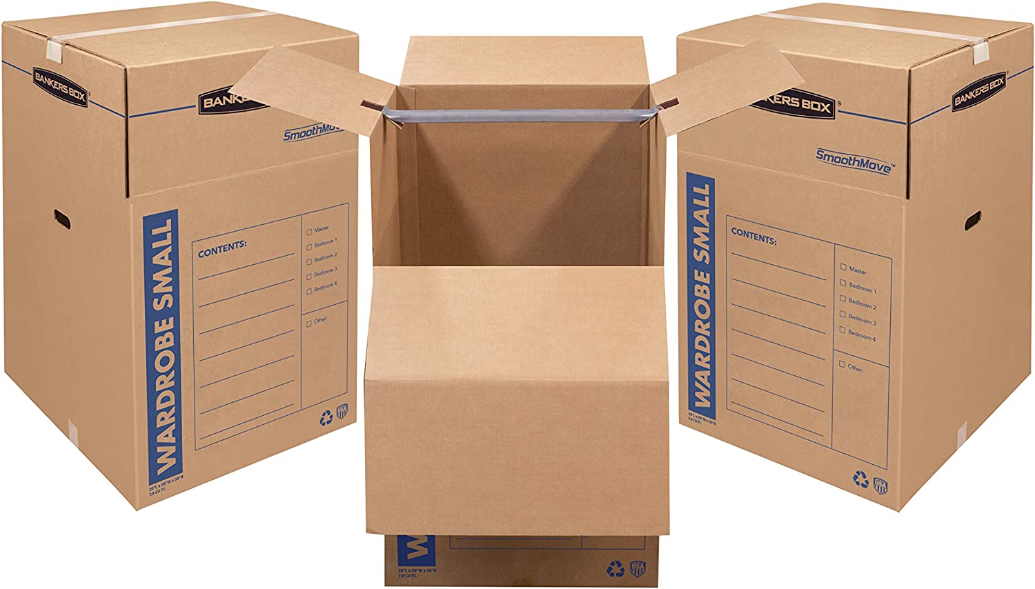 Bankers Box SmoothMove Wardrobe Moving Boxes, Short, 20 x 20 x 34 Inches, 3 Pack (7710902)