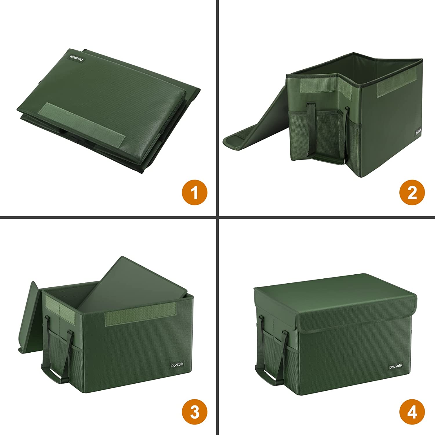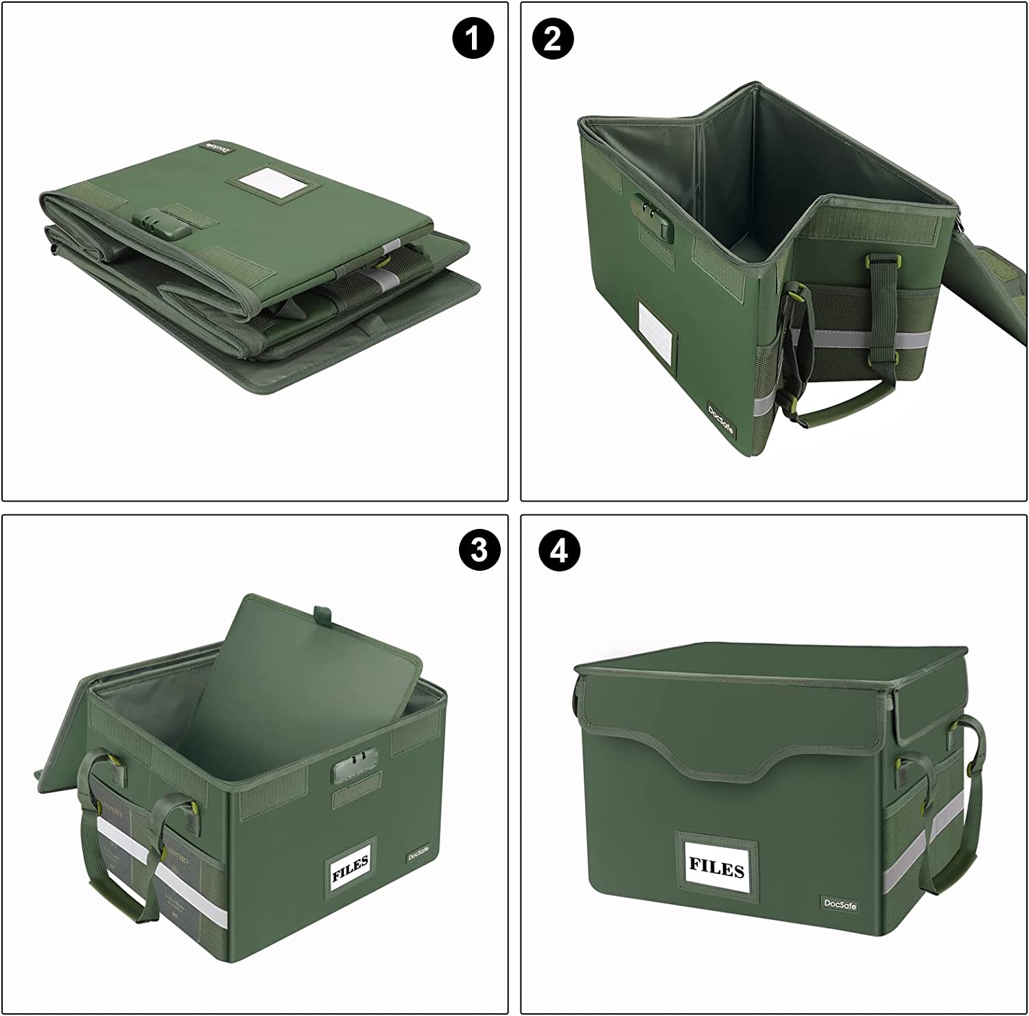 • Humanized Design: The fireproof file box collapses down simply for easier storage when not in use, you can put it in your home,office,car and other places.High quality combination lock design for added storage security. Sturdy adjustable handle makes it easy to carry everything you need, two zippers make it easier to open and close the box,label slots allow you to easily sort each box,the non-slip pad at the bottom makes the product more durable,Hook&Loop for additional protection of the box.