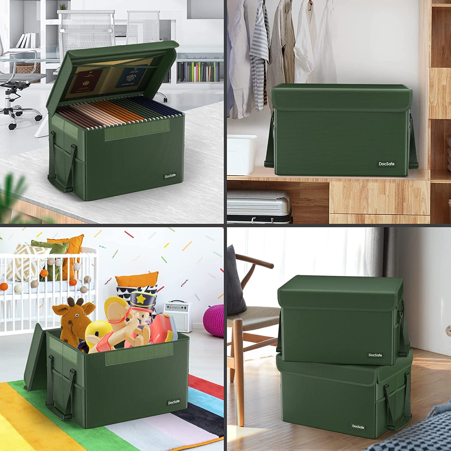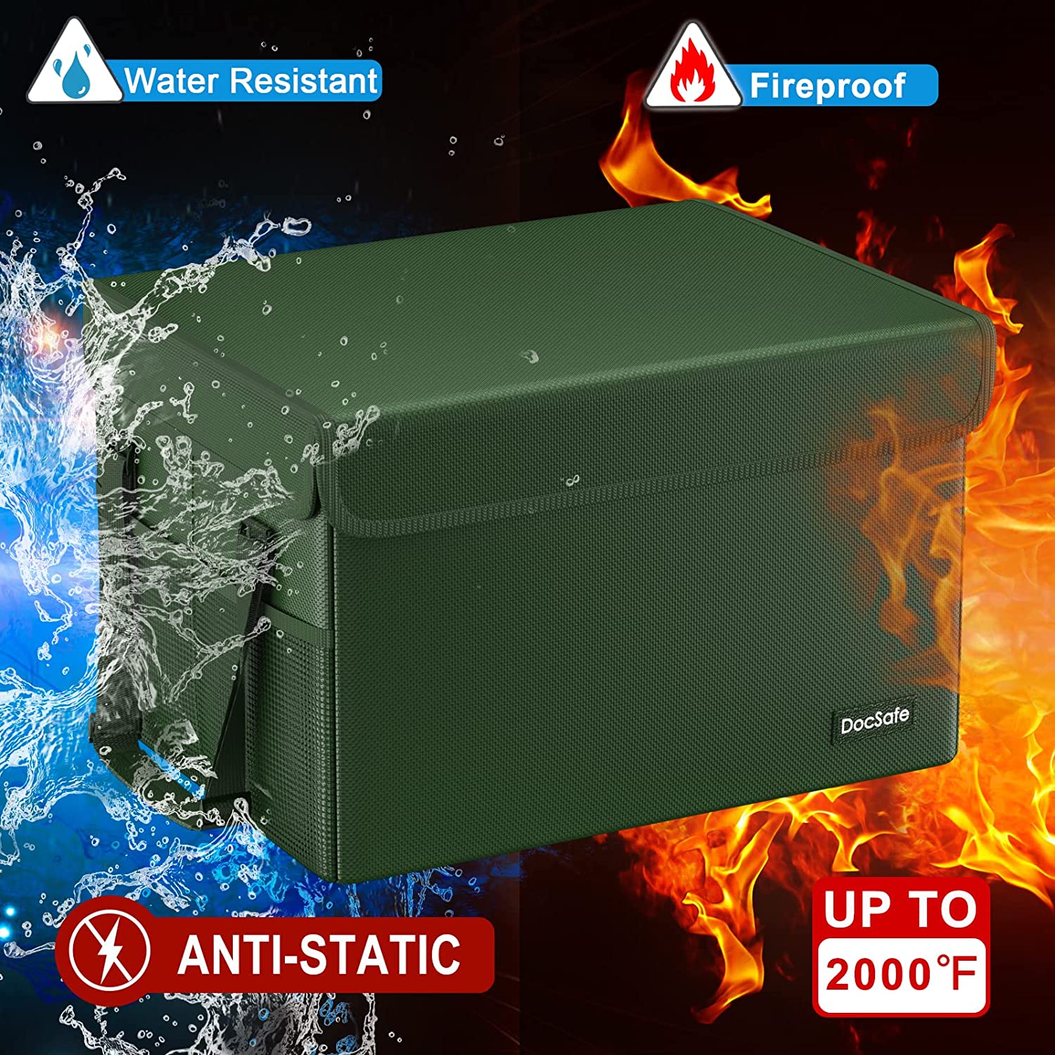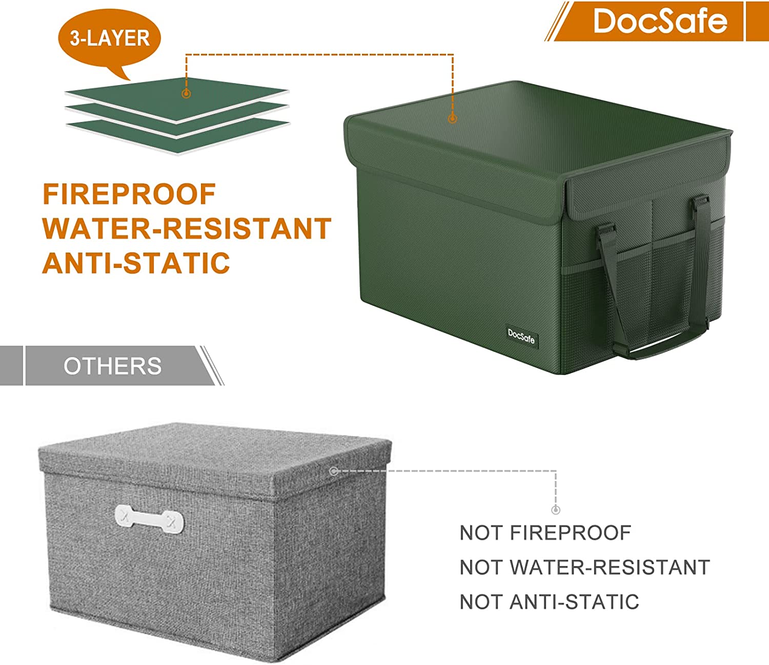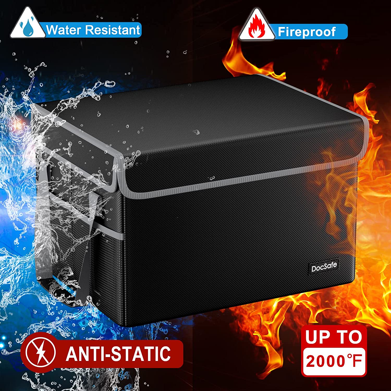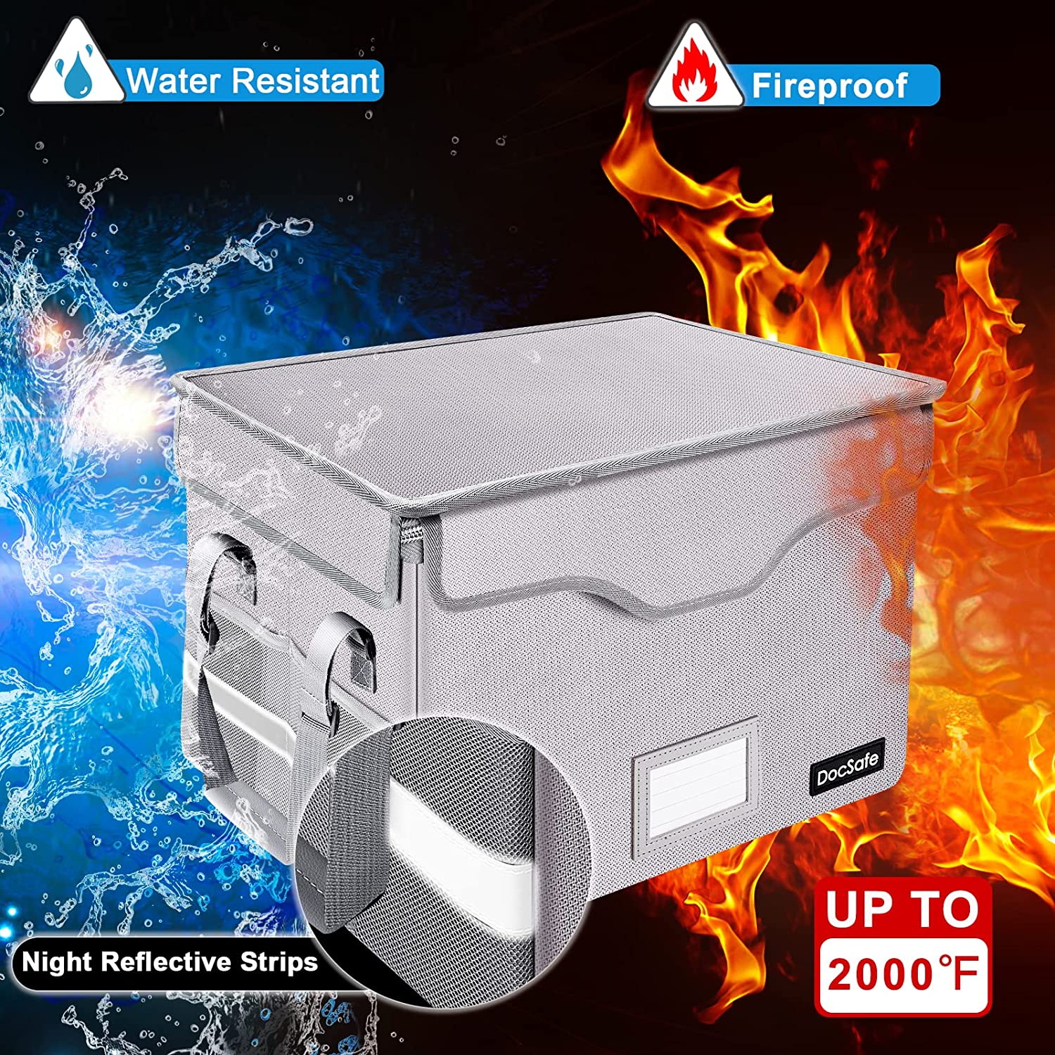 • High quality, Innovative design: Fireproof document box uses different boards than other box,High quality PP boards won't warp and it can hold a minimum of 150 lbs. The Non-dusty material can prevent dust from sticking to the outside of our fireproof box, always keep it neat and tidy. The reflective strip design on the side of the box allows you to immediately find your fireproof box even at night, protecting irreplaceable documents and valuables from fire.
