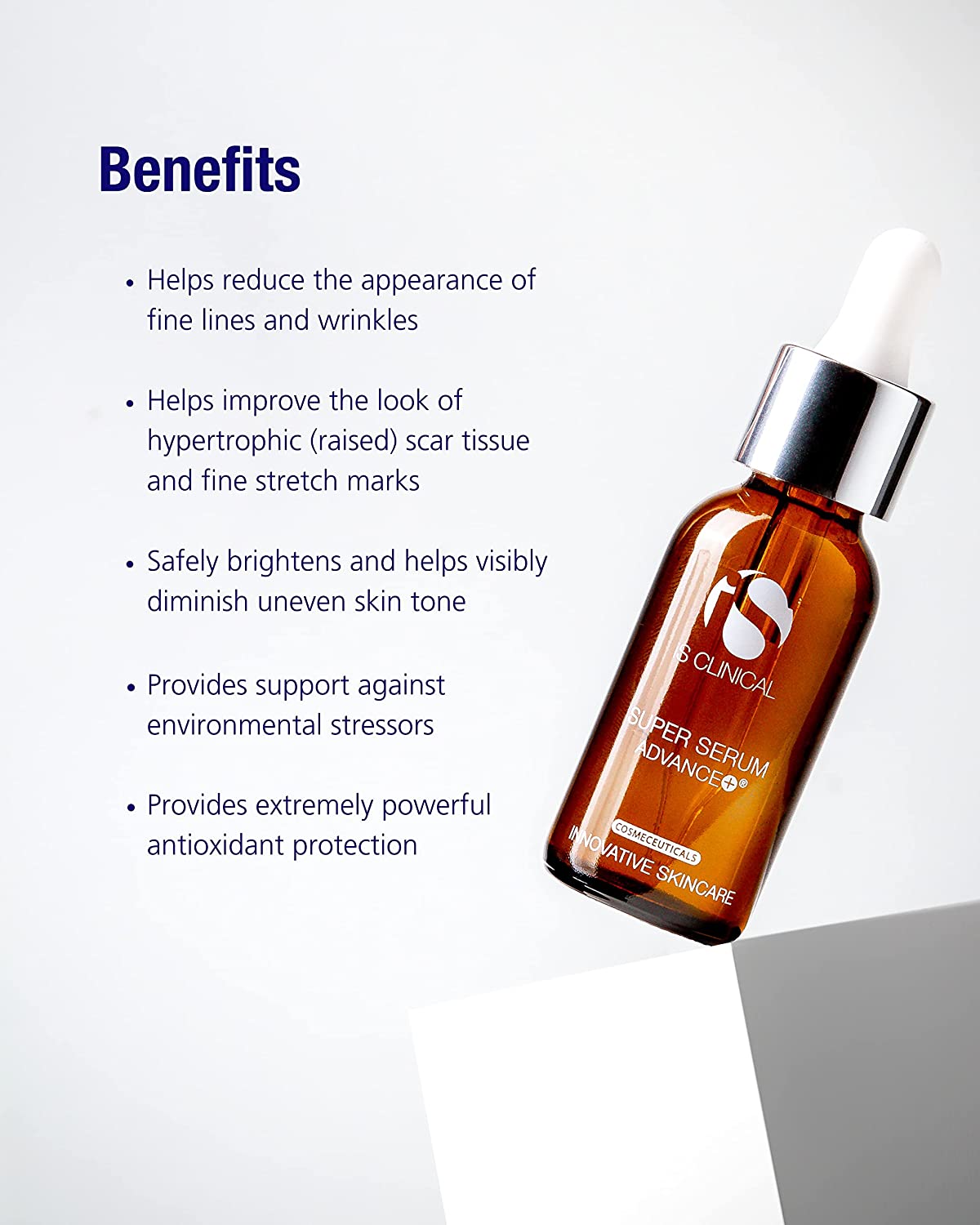 iS CLINICAL Super Serum Advance+, Anti-Aging Vitamin C Face Serum, reduces scaring and fine stretch marks