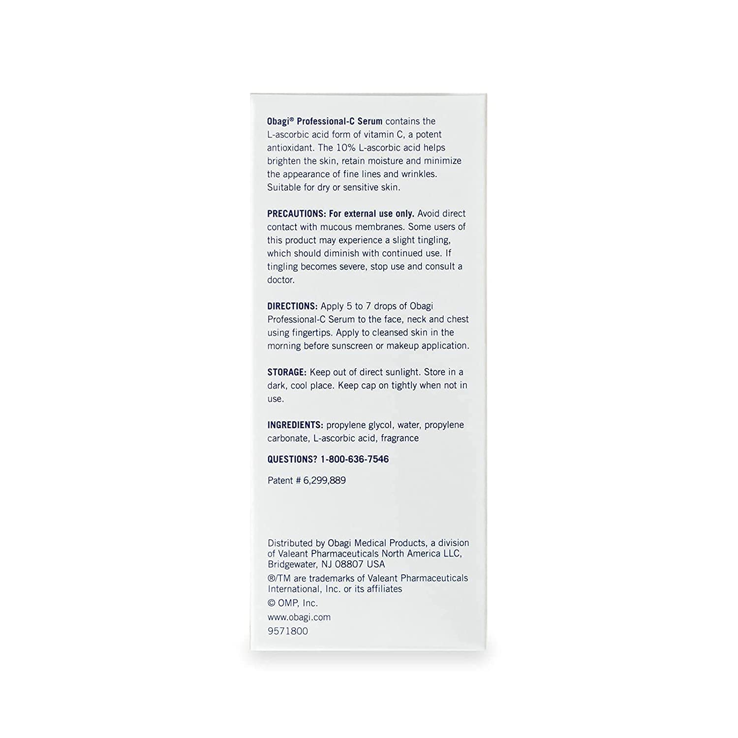 Obagi Professional C Serum 10%, Vitamin C Facial Serum with Concentrated 10% L Ascorbic Acid for Normal to Oily Skin, 1.0 Fl Oz.
