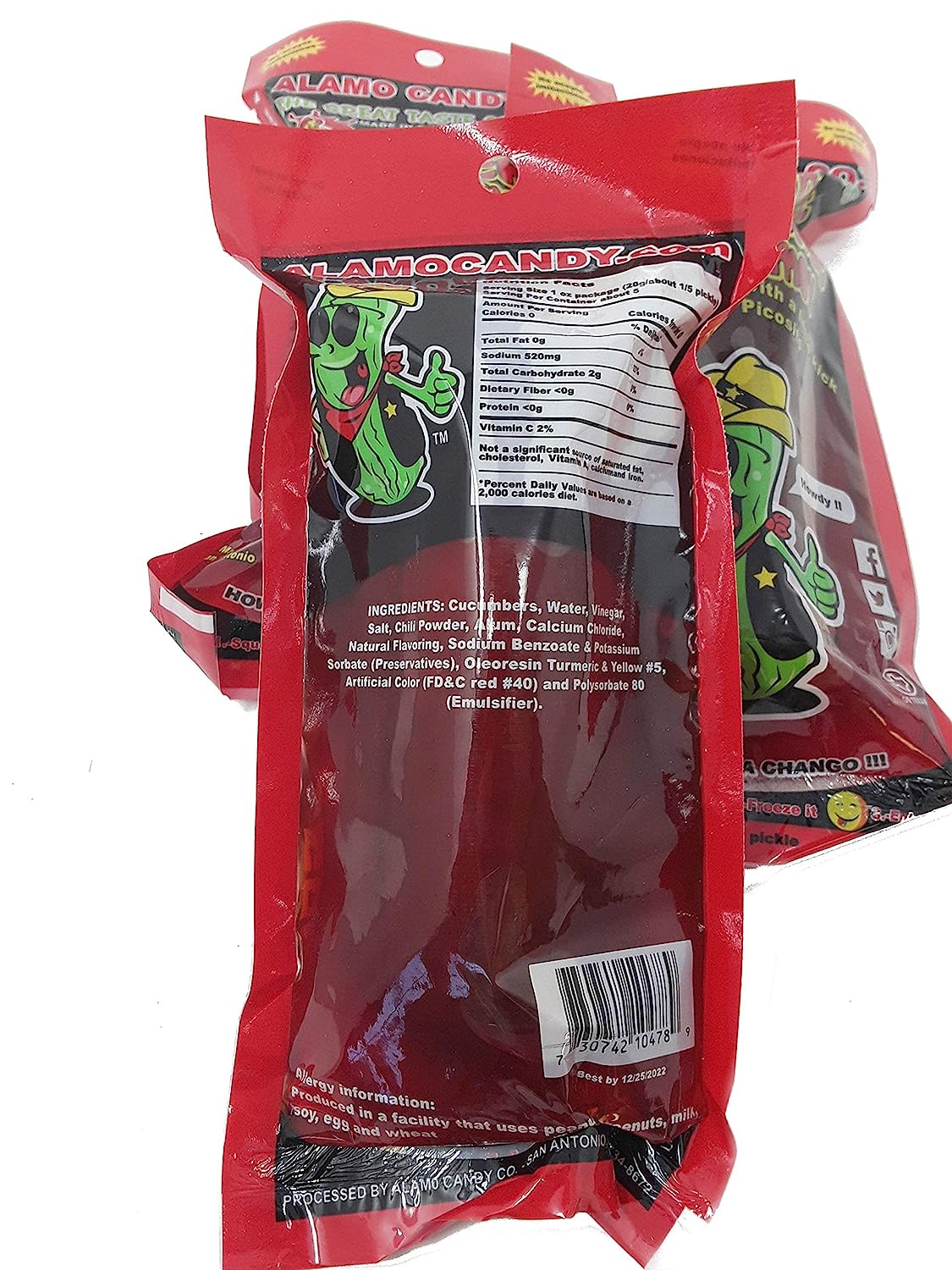 Alamo Candy Big Tex Dill Pickle In Chamoy - Three Pickles - Individually Wrapped - Made In San Antonio, Texas - Large Pickles