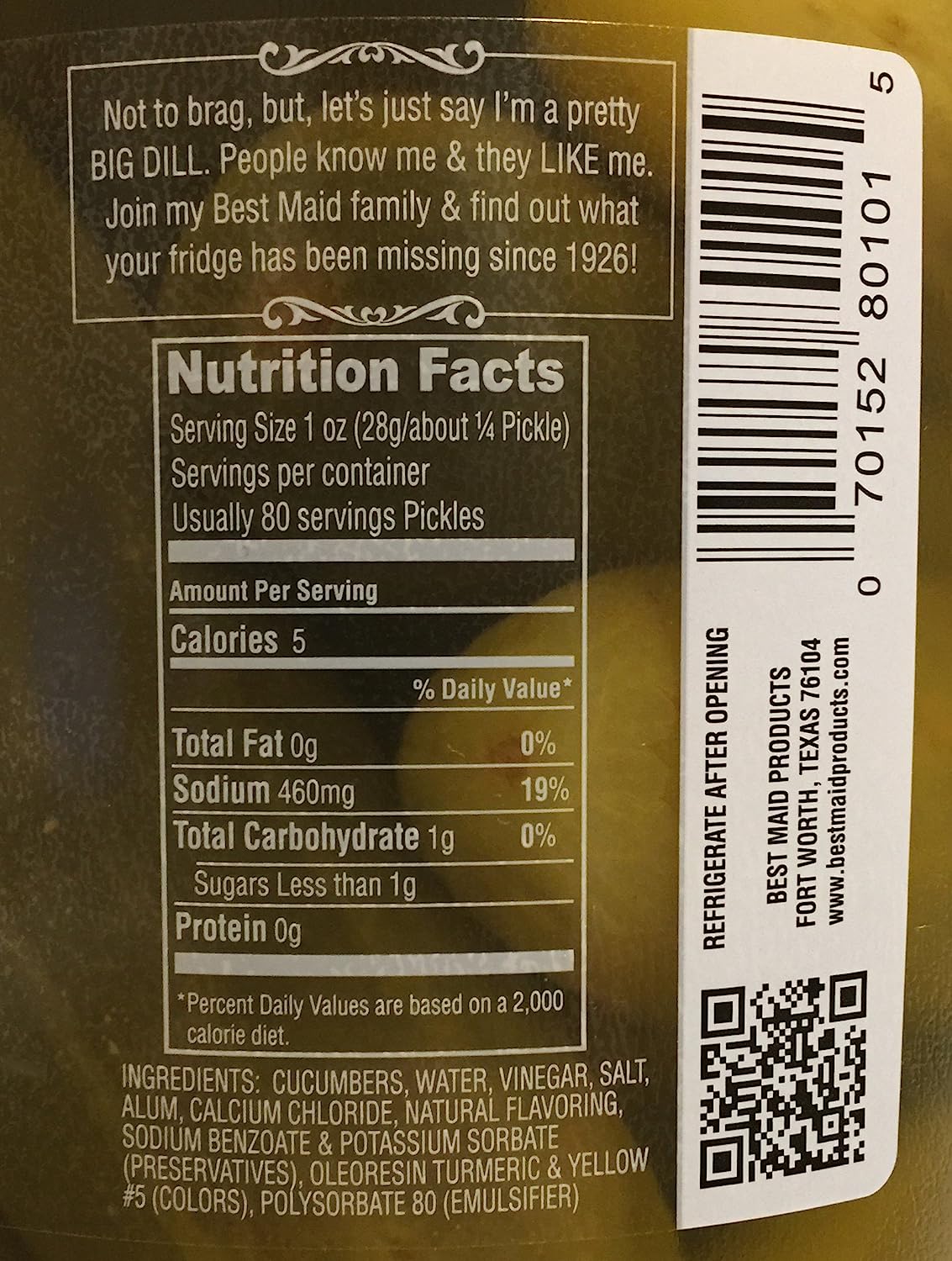 One Gallon of 18-22 delicious dills.