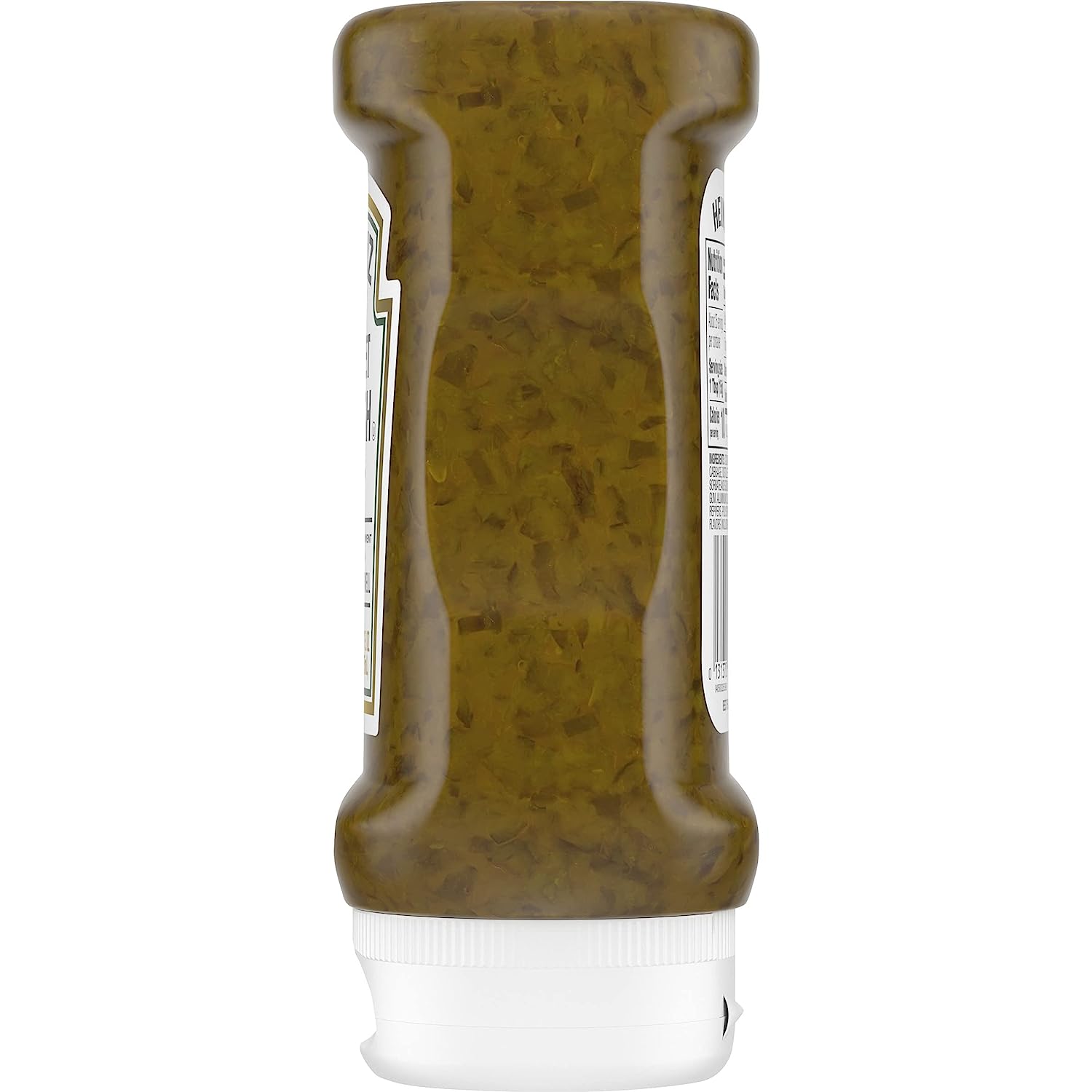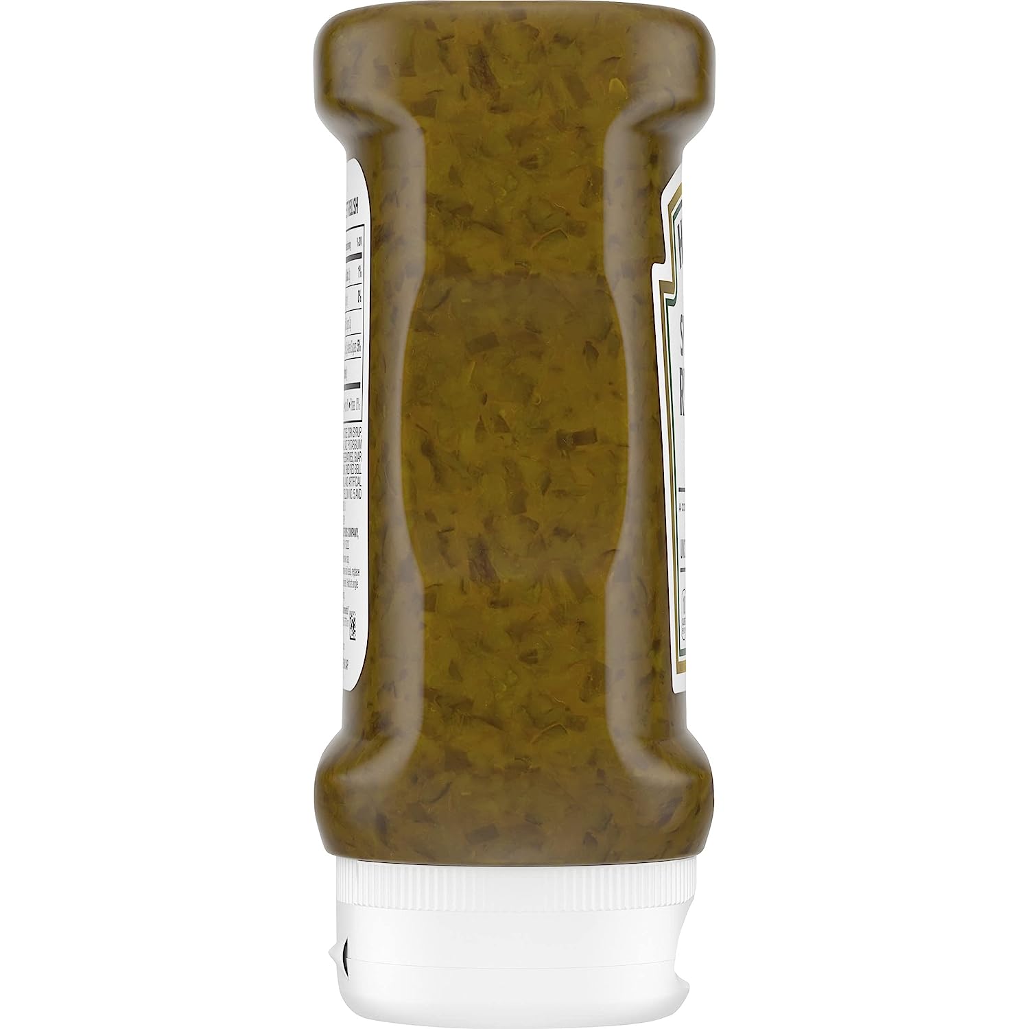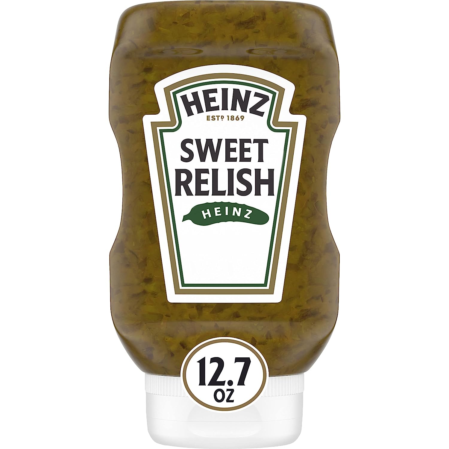 Featuring crunchy pickled cucumber and cabbage immersed in vinegar, Heinz Sweet Relish will help you create flavors which complement any dish. With chunks of red bell pepper and extracts of turmeric, this 12.7 fluid ounce bottle of Heinz Sweet Relish will add a completely new dimension of flavors to your favorite dish. This relish is prepared with care so that every bottle has the perfect ratio of ingredients to complement your favorite foods. Just drizzle this relish on top of your food or use it as a dip and the crunch from cucumbers and cabbage will add life to any meal.