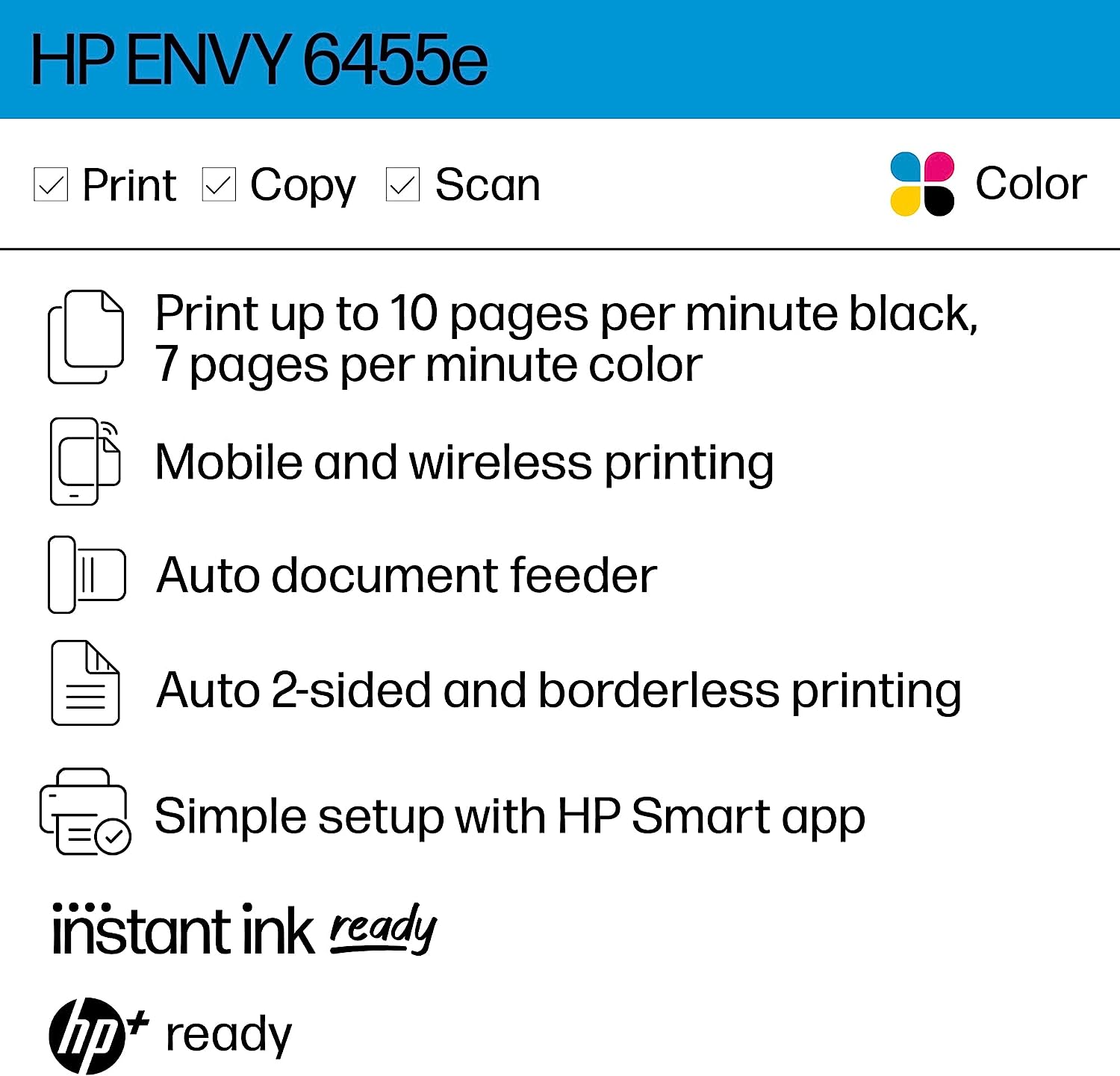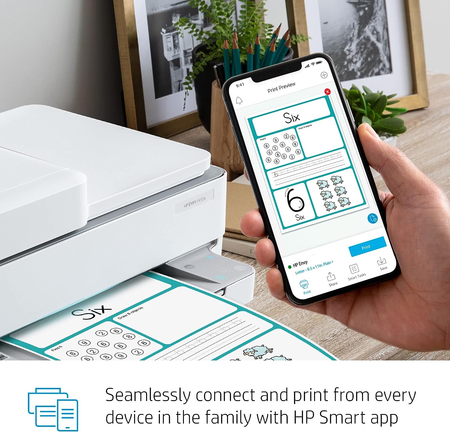 HP Envy 6455e Wireless Color All-in-One Printer with 6 Months Free Ink (223R1A) (Renewed Premium), white