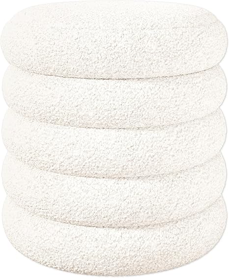 Ottoman with Storage, Round Ottoman for Dorm, Small Storage Foot Stool with Soft Cushion Cover, Upholstered Vanity Chairs for Makeup, Living Room, Bedroom, Boucle (Beige)