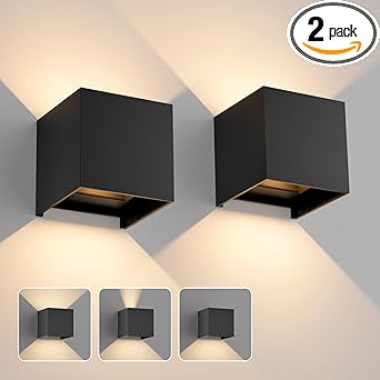 2-Pack Outdoor LED Wall Light Black, Aluminum IP65 Waterproof Up and Down Lighting Wall Sconces, Exterior/Interior 20W 3000K Square LED Wall Lamp for Bedroom House Yard Garage Walkway Garden