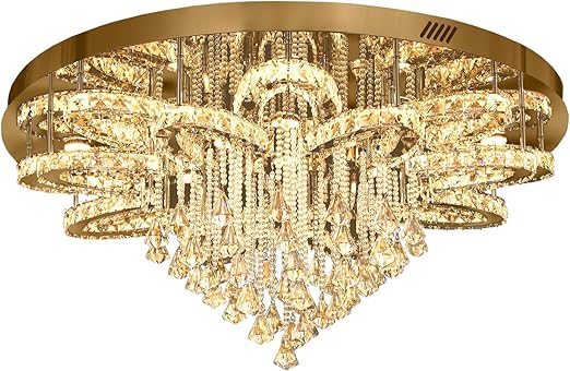 32" Modern K9 Crystal Chandelier Flush Mount LED Gold Ceiling Light Fixture Pendant Lamp for Living Room Restaurant Dimmable Lighting