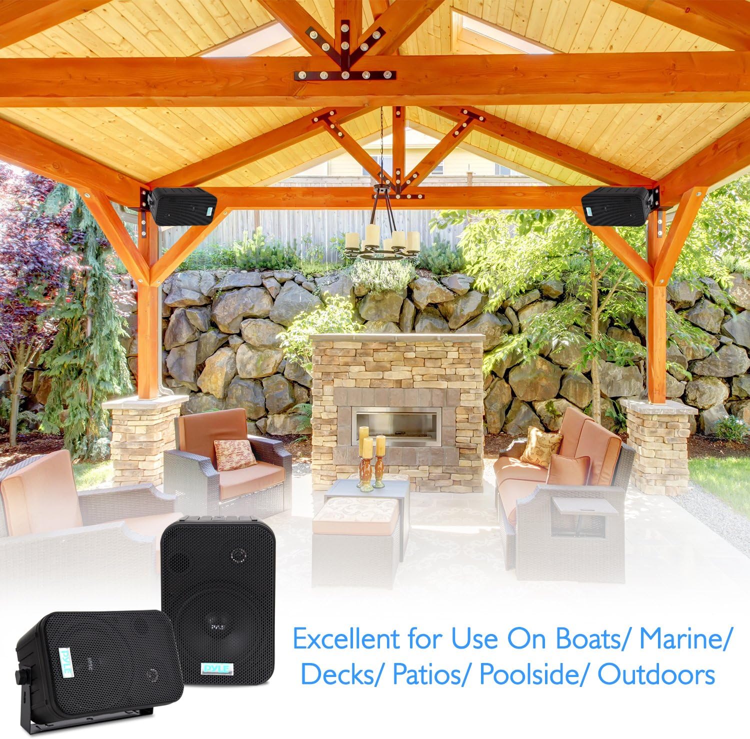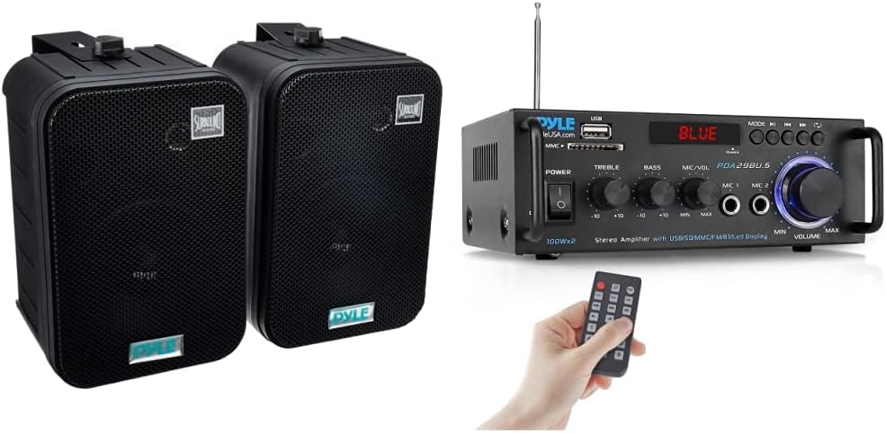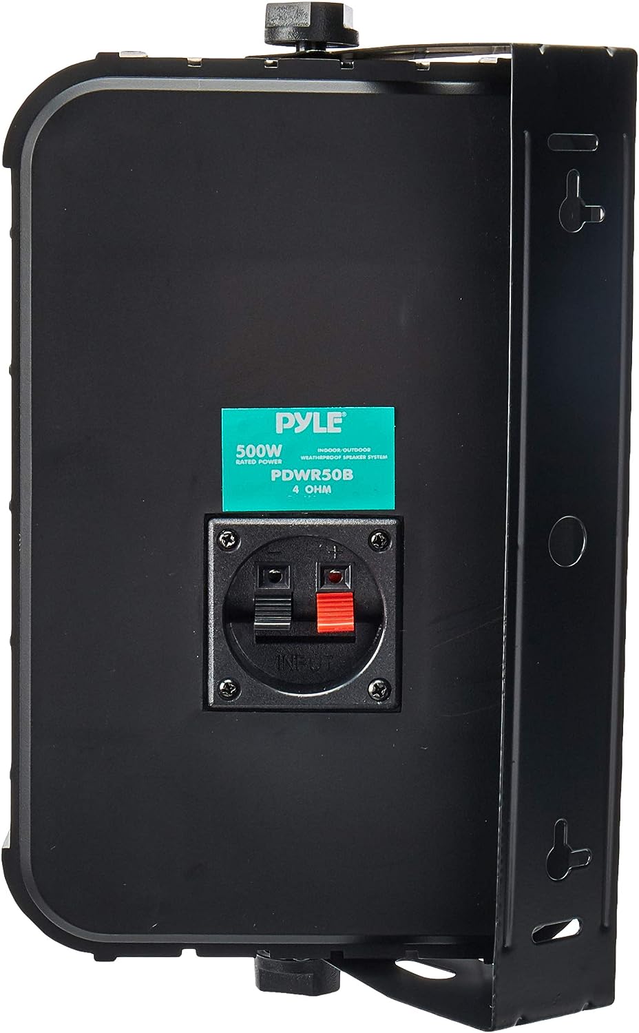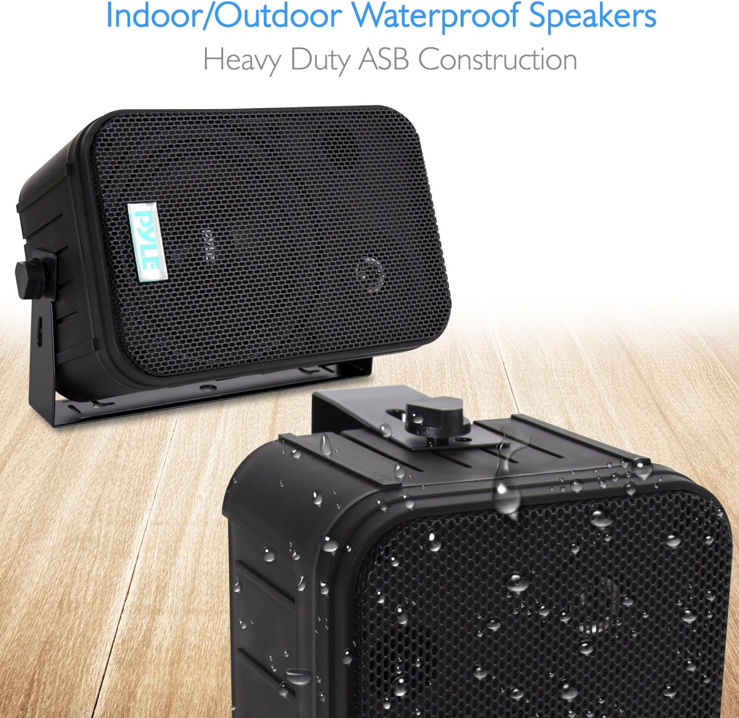 These black Pyle indoor/outdoor waterproof speakers are excellent for use on boats, decks, patios, or by the pool - anywhere outdoors. They're completely waterproof, thanks to the heavy duty ABS construction. And they're powerful - 500 watts max. A 6.5' aluminum injection cone woofer provides the midbass, while a 1' high compliance Mylar tweeter pushes sweet highs. A capacitor crossover network separates these two channels discretely for a brilliant sound. Connect wires easily and effortlessly using the quick connect speaker terminals. The bass reflex vent boosts the bass response for a deeper, more powerful sound, ultimately delivering a frequency response of 30 Hz to 22 kHz. Mount using the unique spring loaded mounting system. The mesh grills are rustproof and removable. Sold as a pair.