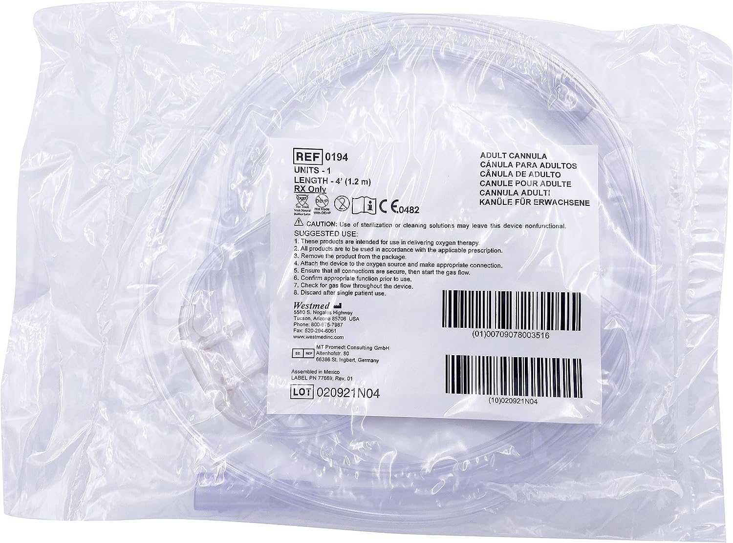 5-Pack Comfort Soft Plus Adult Oxygen Nasal Cannula with 4' Kink Resistant Tubing by Westmed #0194 Note: This item is will be discontinued Fall 2023. Manufacturer recommended replacement: Salter Labs 16SOFT-4