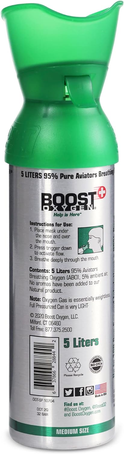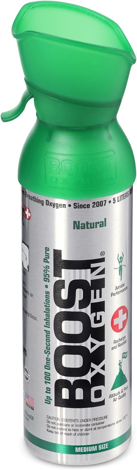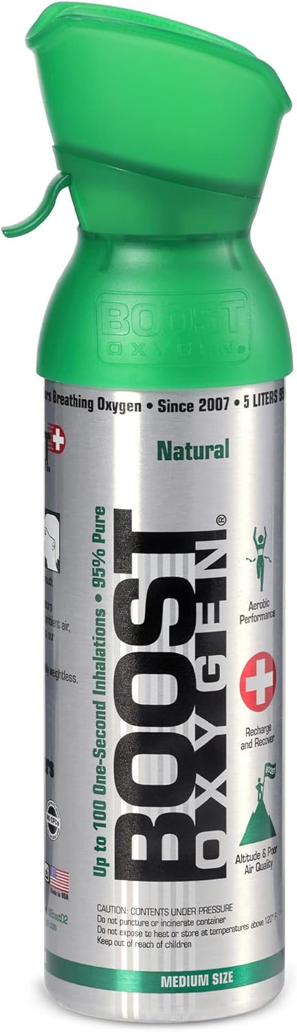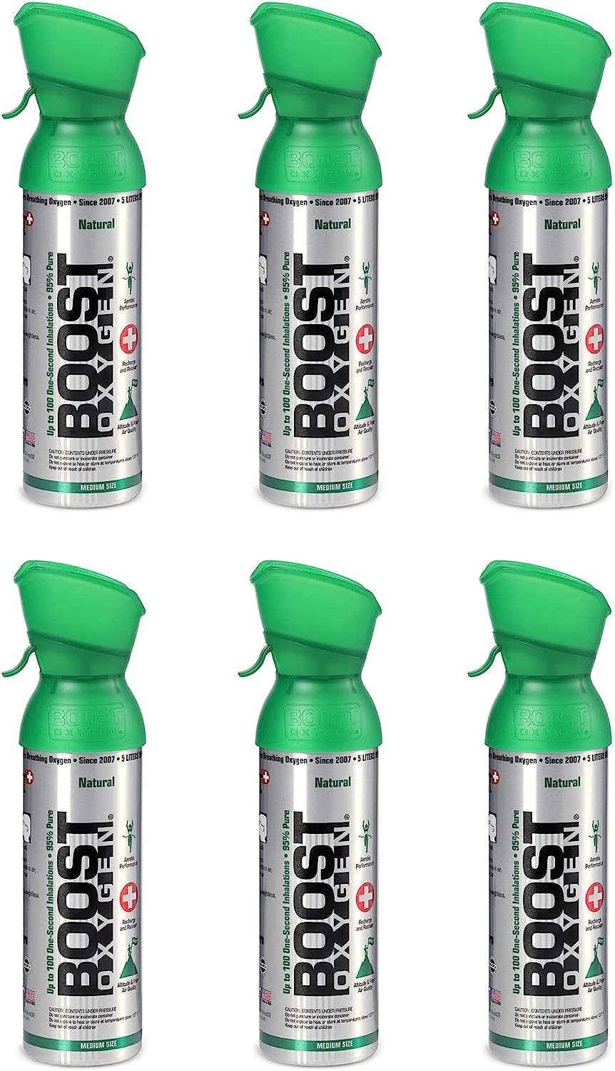 Boost Oxygen Medium Natural Aroma 5 Liter Canister | Respiratory Support for Aerobic Recovery, Altitude, Performance and Health (6 Pack)