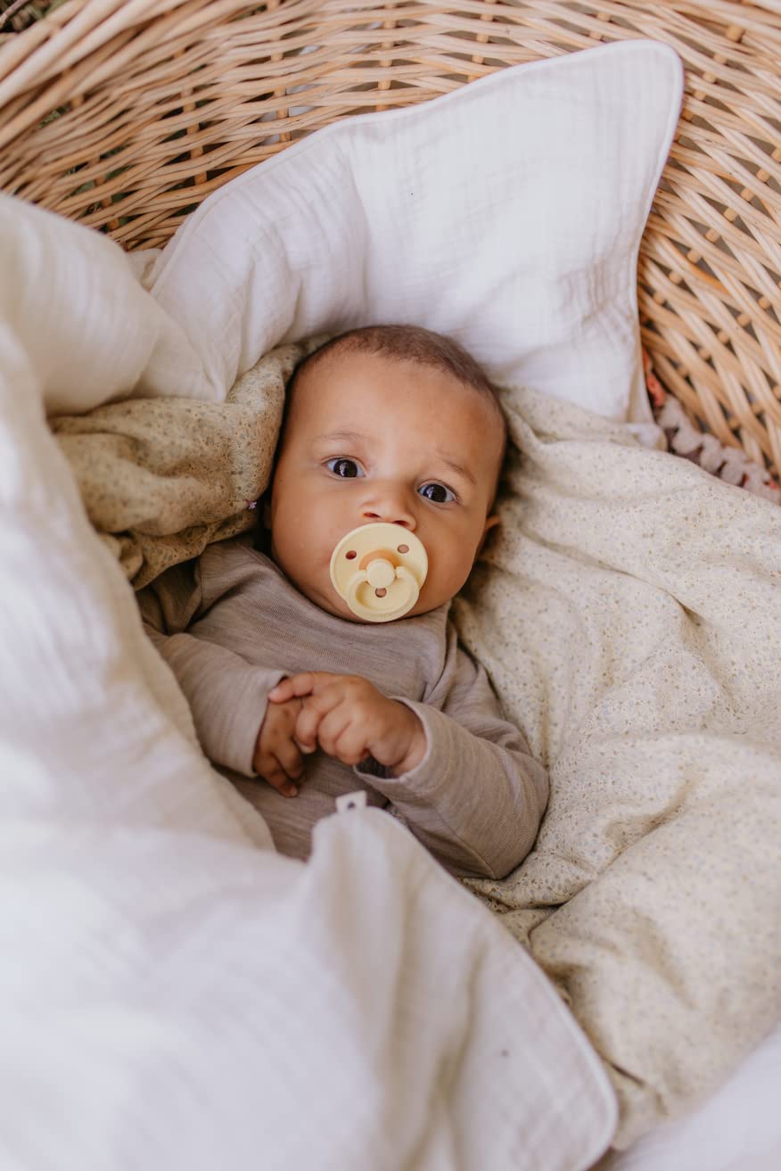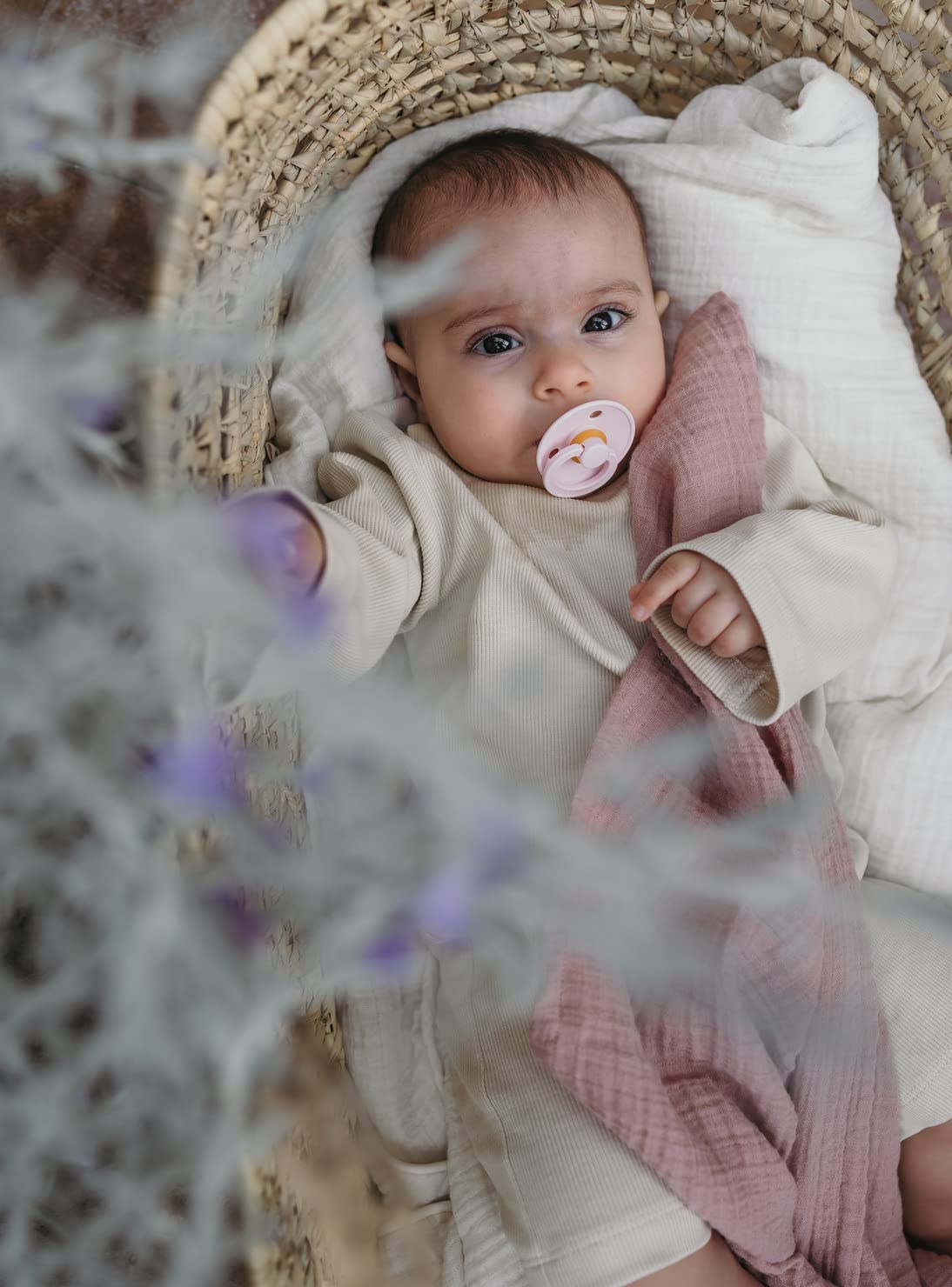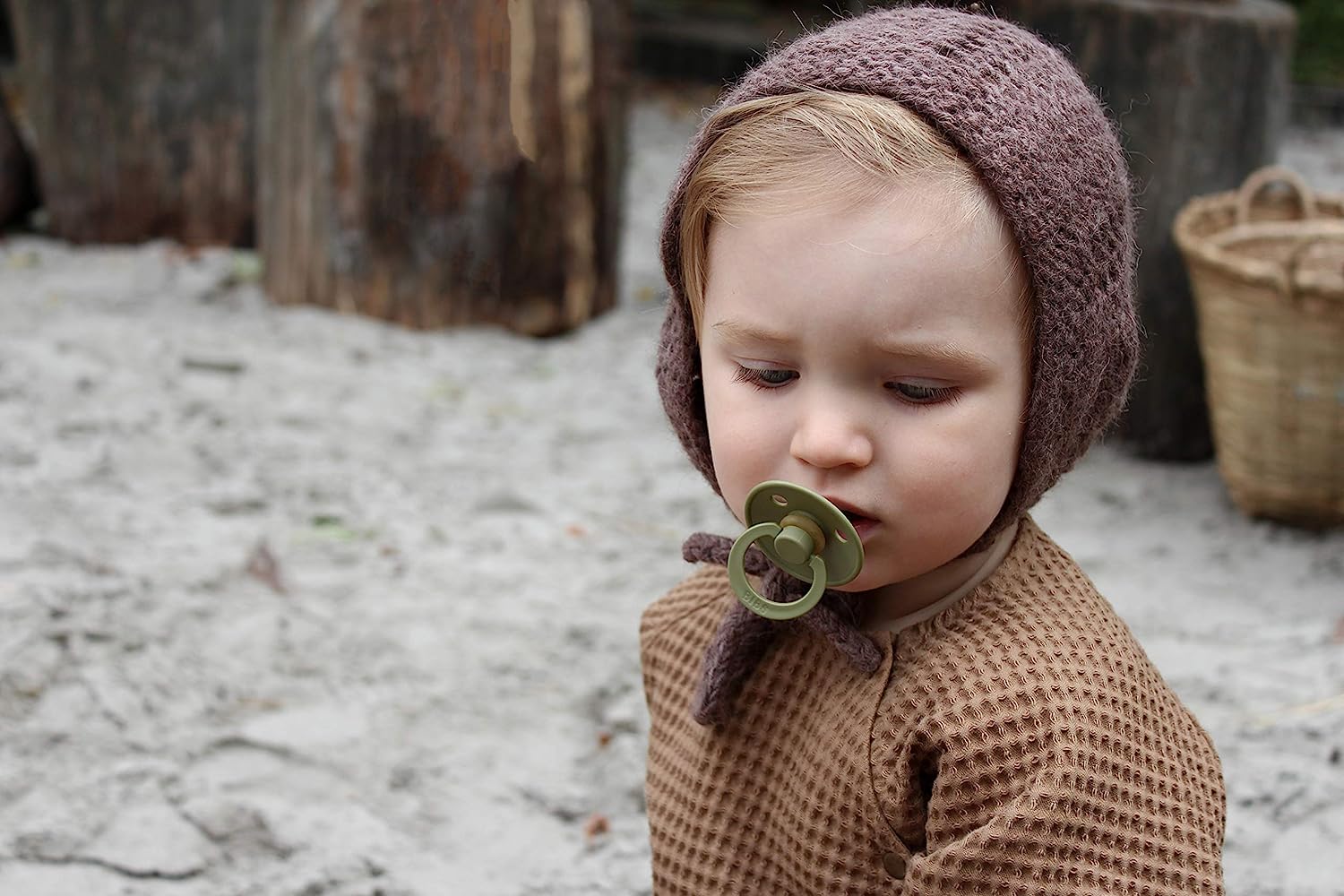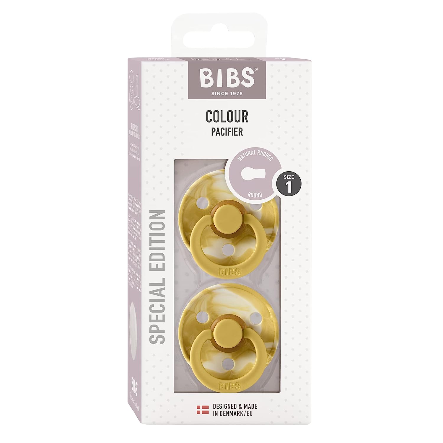 A classic round pacifier in a timeless design. Designed and made in Denmark. BIBS COLOUR has been on the market for over 40 years – an all-time favourite! BIBS COLOUR is the preferred pacifier for many children because of the cherry shaped nipple. The shape of both shield and nipple is like a mother’s breast and is the optimal support for a natural sucking reflex and for breastfeeding. The nipple is made of 100% natural rubber latex – which is soft and flexible. The nipple is equipped with a vent hole, letting out the air to make the teat shape as natural as possible. Because of the natural material, variations in colour and clearness may occur – remember to replace within 4-6 weeks of regular use! The shield is convex which allows airflow to ventilate the delicate baby skin. The shield is made of polypropylene (PP), a very light plastic material with high strength, and is very wear resistant.