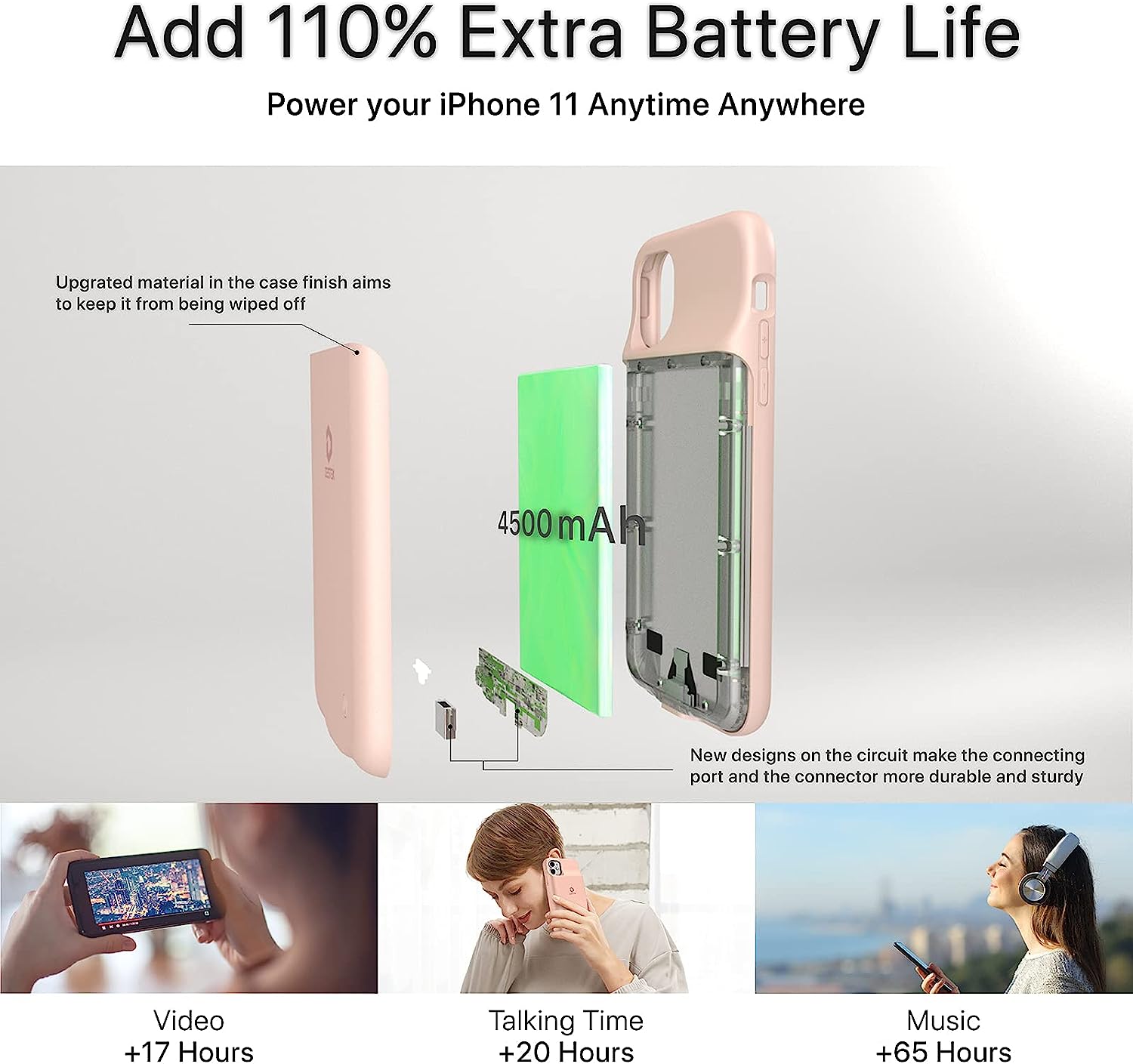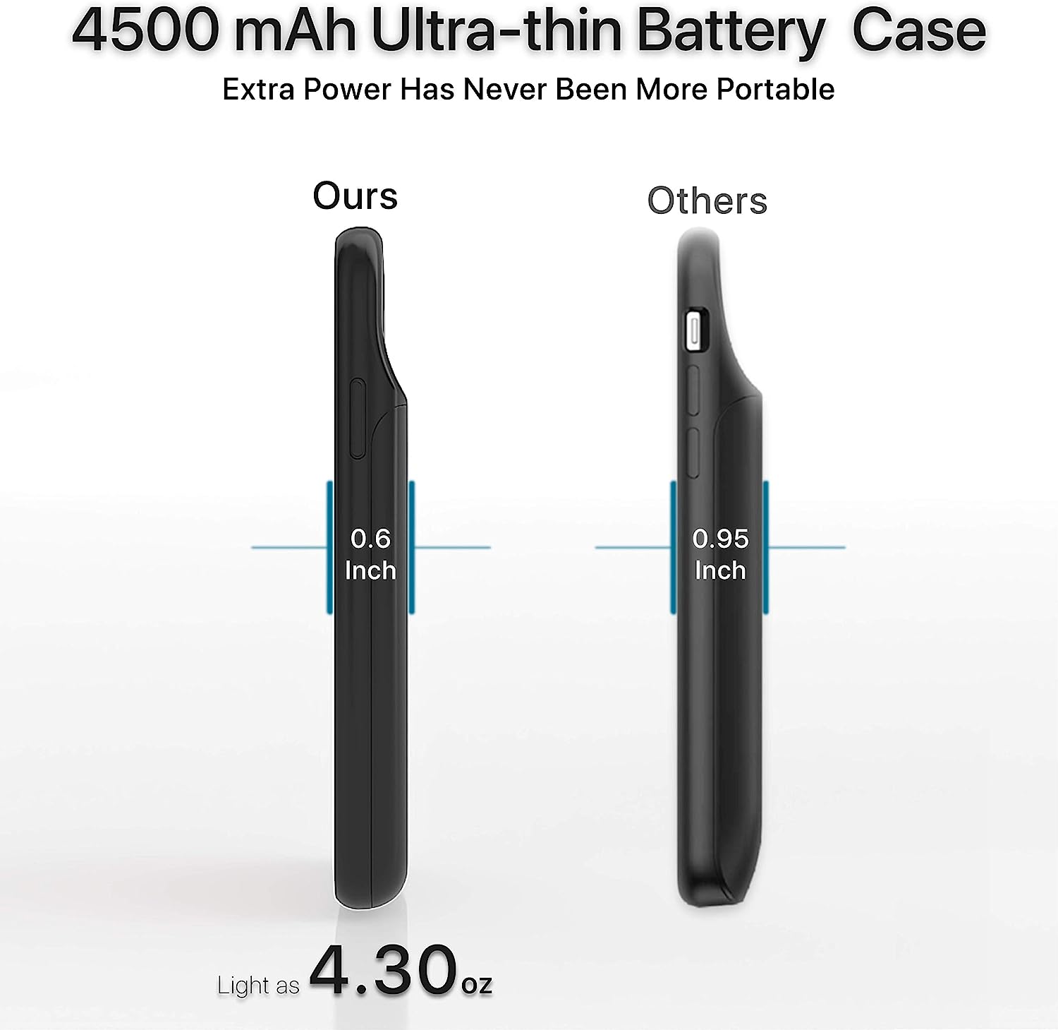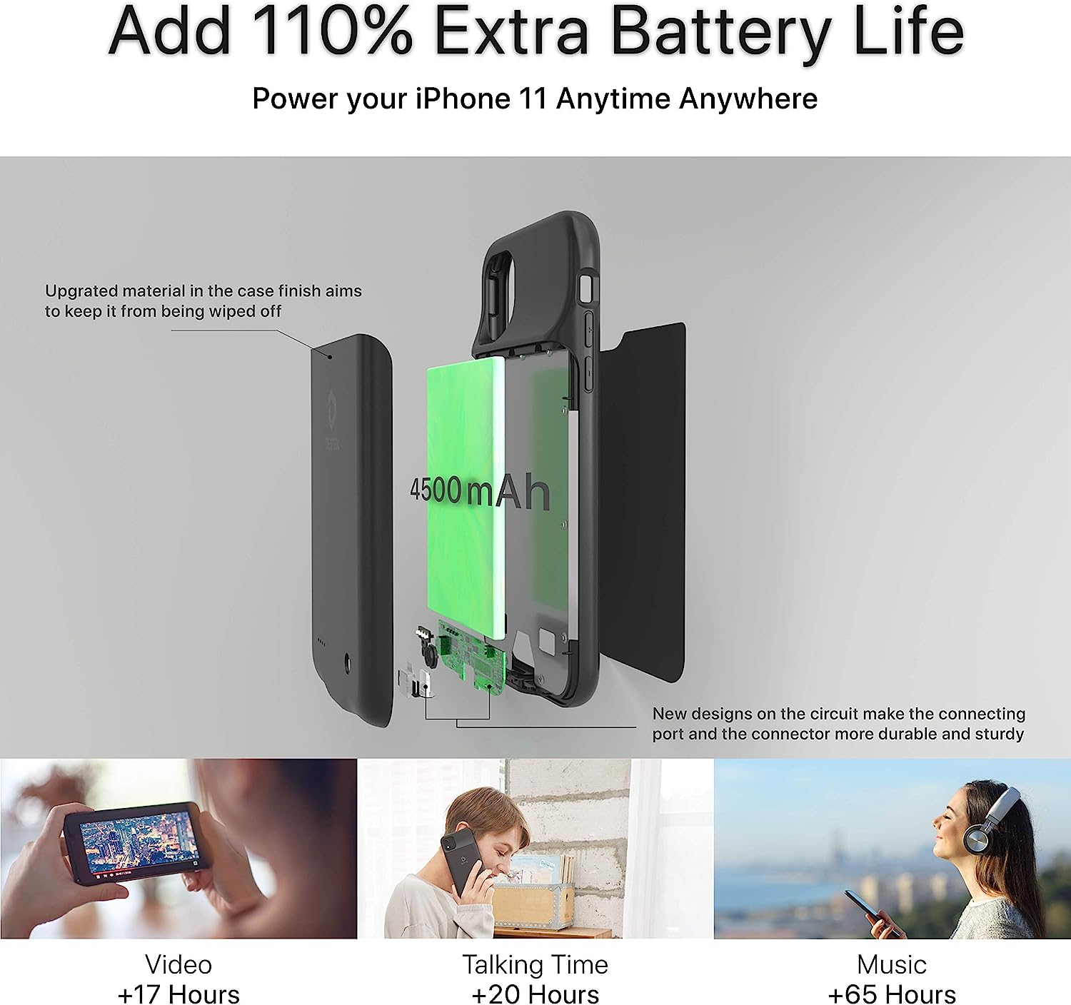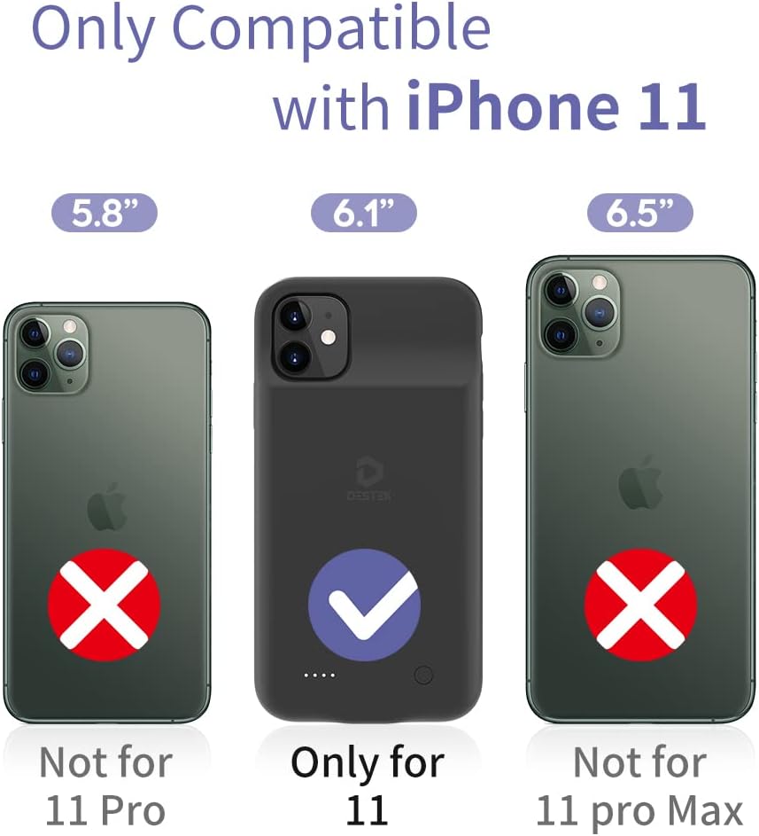 • ⚡【Slim & Light With Real Capacity】With real 4500mAh capacity(add extra 110% battery life), DESTEK iPhone 11 charging case is only 0.27 lb weight and 0.6 inch thick, which makes it be the best choice for you to extend your battery life when you are going to travel,shop or date. And it takes about 4 hours to fully charge the battery case alone, much shorter than the battery case with high capacity.