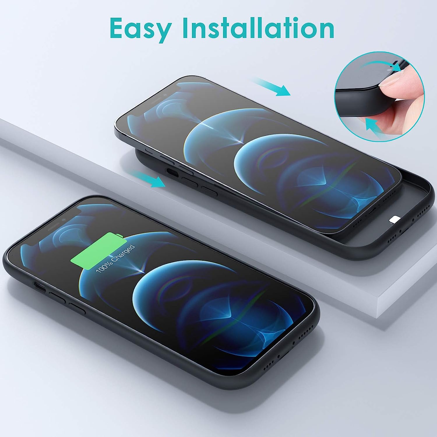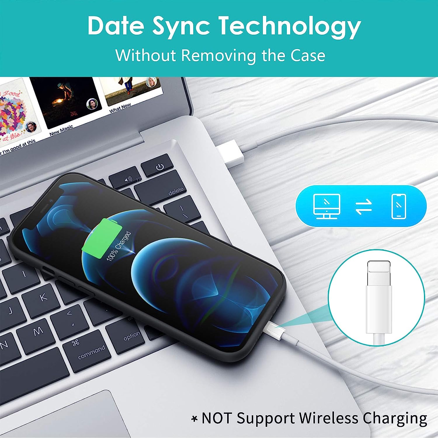 • ►【Advanced Sync Tech & Easy Installation】 Conveniently to sync your iPhone's data to your Mac book, PC or laptop without removing the battery case. 100% compatible with all iOS versions and future updated iOS software, not compatible with Apple CarPlay. Just slide your phone into the battery case and press the power button for 3 seconds to switch on/off charging modes.