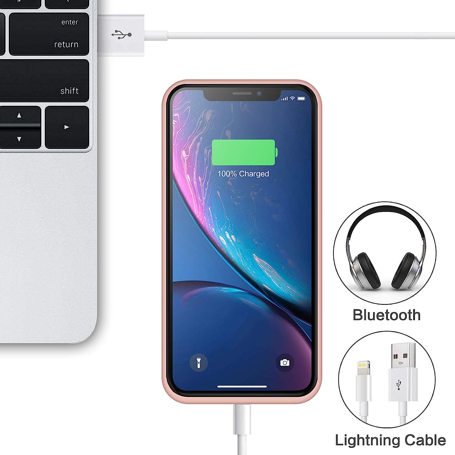 5. The battery case intelligently stop charging when your iPhone XR's power is 100% to protect your phone battery