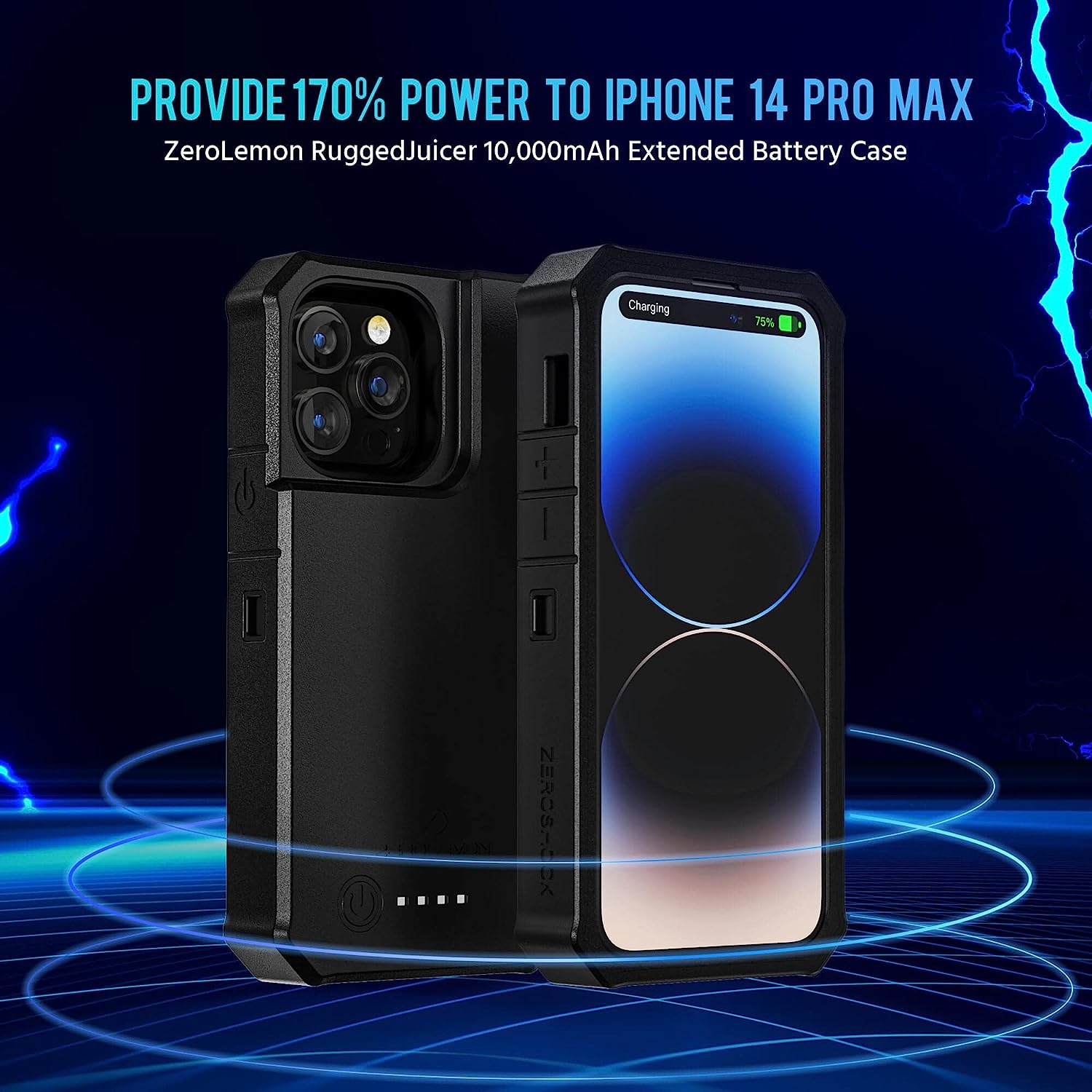 ZEROLEMON Battery Case for iPhone 14 Pro Max, 10000mAh Wireless Charging Supported, RuggedJuicer Portable Extended Battery Charger Cover with Rugged Case for iPhone 14 Pro Max 2022