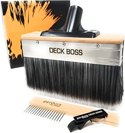 Deck Stain Brush Applicator - Deck BOSS by Perdura - 7 inch Paint Brush - Stain Seal and Paint for Floor and Fence - Brush Tool for Water and Oil Based Coatings on Wood and Concrete Rough or Smooth