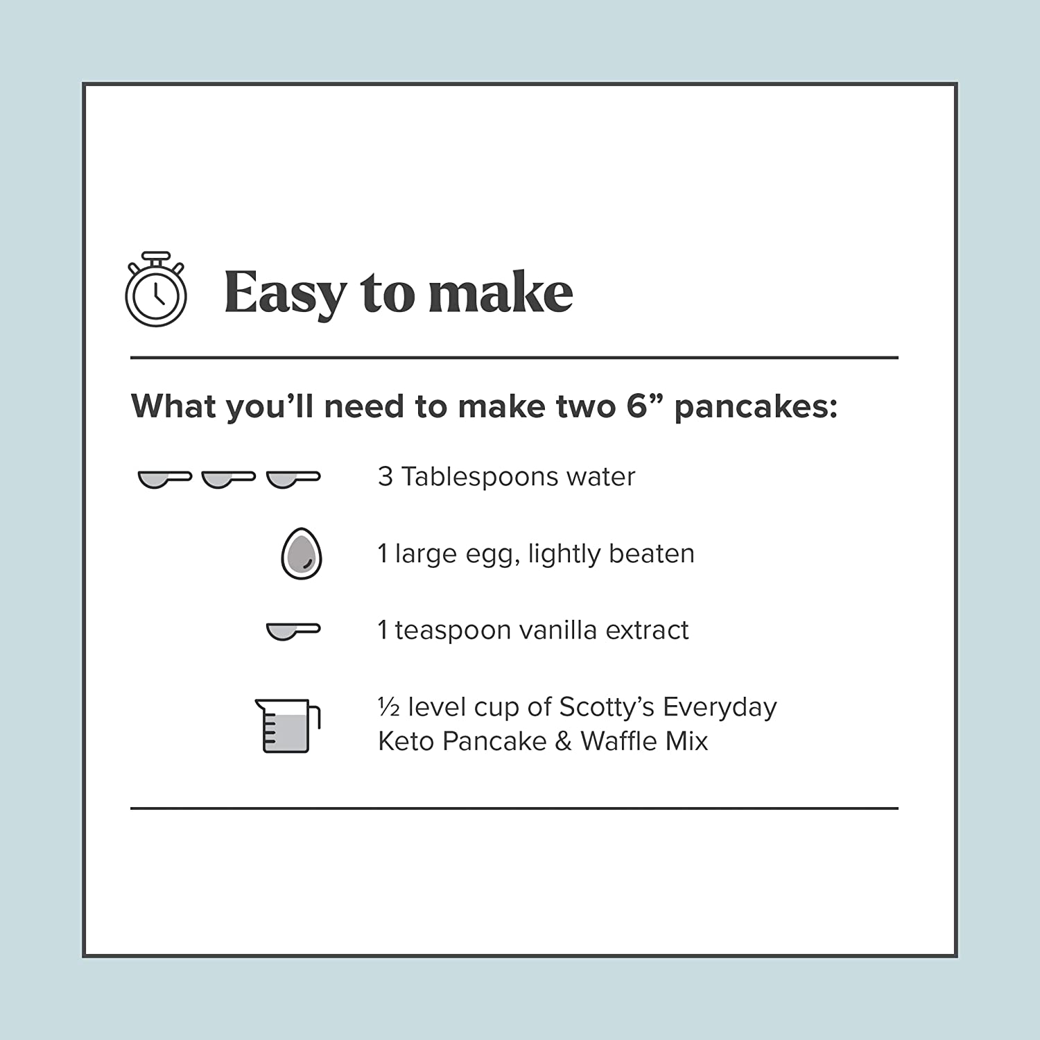 • Soft and Fluffy: Scotty’s soft, fluffy pancakes taste just like the familiar ones you grew up eating, but without all the net carbs. Pillowy soft with a subtle sweetness, they’re perfect for adding your favorite keto and low carb friendly toppings.