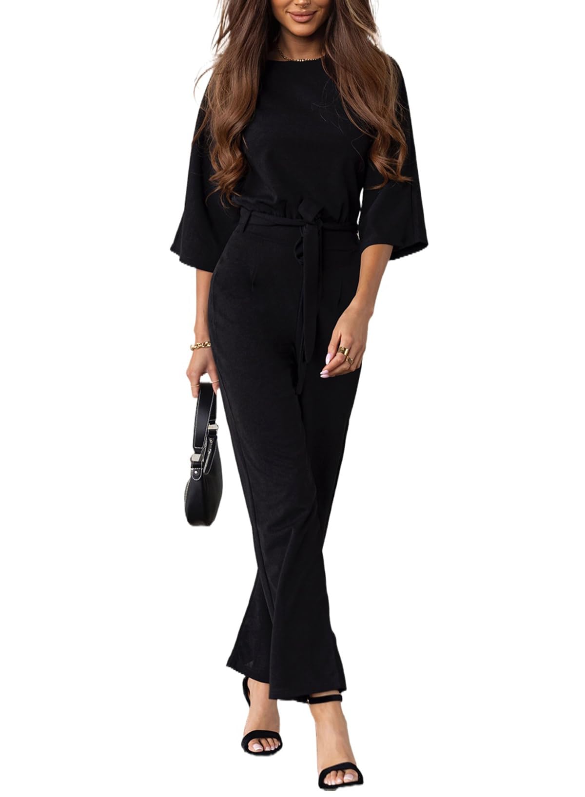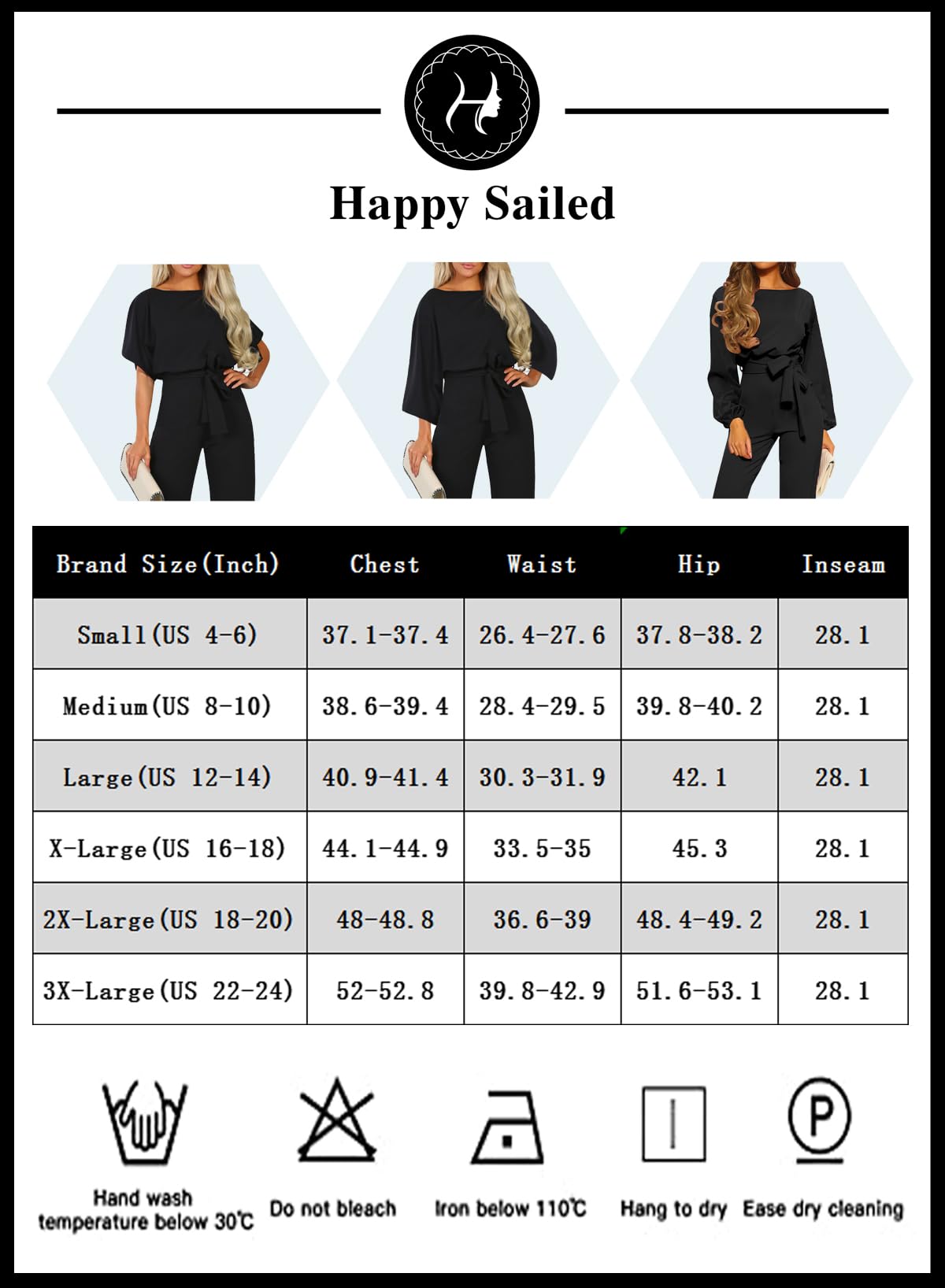 Details: Happy Sailed Women Casual Loose 3/4 Sleeve Belted Wide Leg Pant Romper Jumpsuits