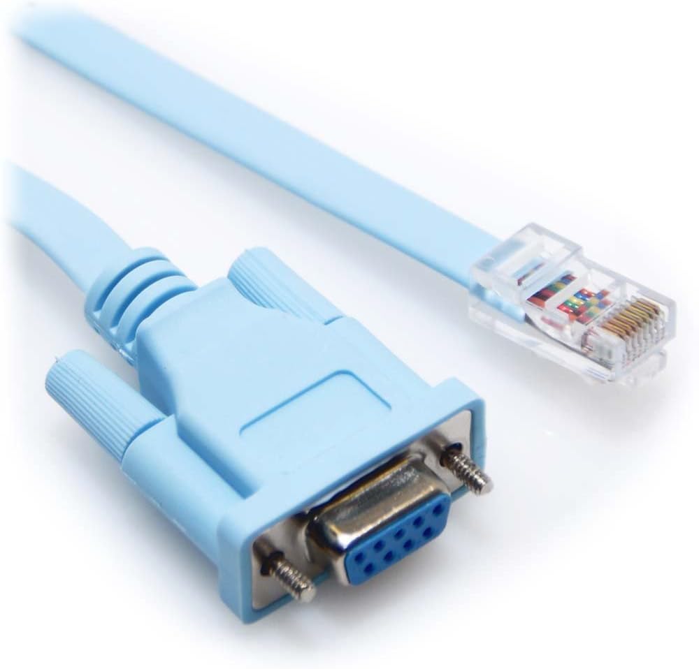 RoutersWholesale - Console Cable | 6' | RJ45 to DB9 | Rollover | Light Blue Our 6 foot, Cisco compatible Light Blue DB 9 to RJ45 Rollover Console Cables are "rolled over" meaning that on connector A pin 1 connects to pin 8 on connector B, pin 2 to pin 7 respectively and so on. The unique wiring is exactly opposite on one connector as it is on the other. Configure your network the way you need to for your router, firewall, switch and more. Plus, this newer Cisco console cable is compatible with most newer Cisco equipment. Make the upgrade today. This is a fit for Cisco part numbers: CAB-CONSOLE, 72-3383-01, CAB-1700-CON=, CAB-1600-CAN=, ACS-2600ASYN=, CAB-ME-CON=, AIR-CONCAB1200=, CAB-CONSOLE-RJ45, 1401-01B7000 Quick Specs: Rollover Pinout6'Light BlueRJ45 to DB9100% CompatibleApplications: Cisco router, switch and firewall configurationCan possibly be used to configure other networking devices as well