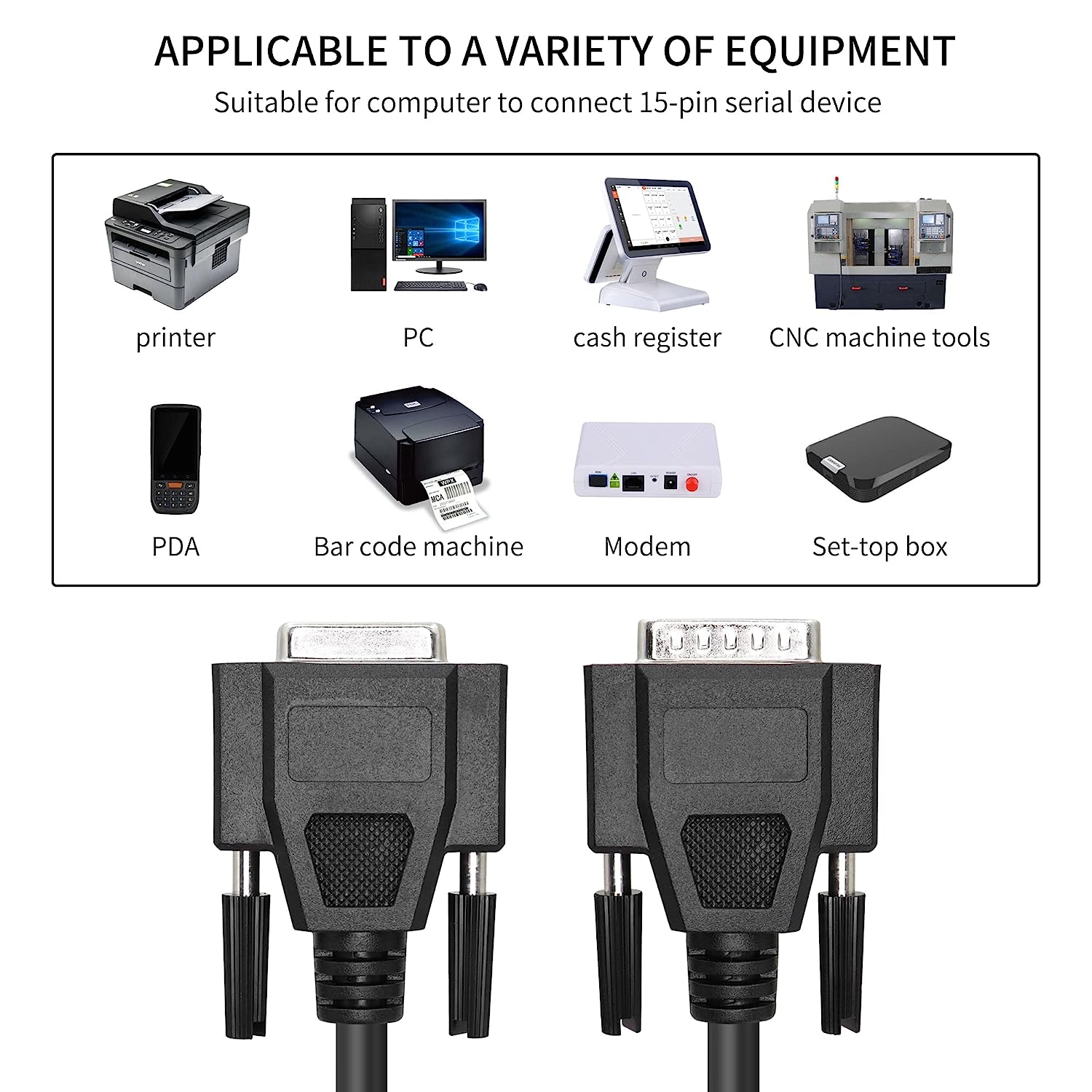 DB15 male to female serial cable, adopt 15-pin gold-plated connector, thick copper wire core, good electrical conductivity, stable transmission, anti-corrosion, anti-rust, extended service life, wide compatibility Features:
